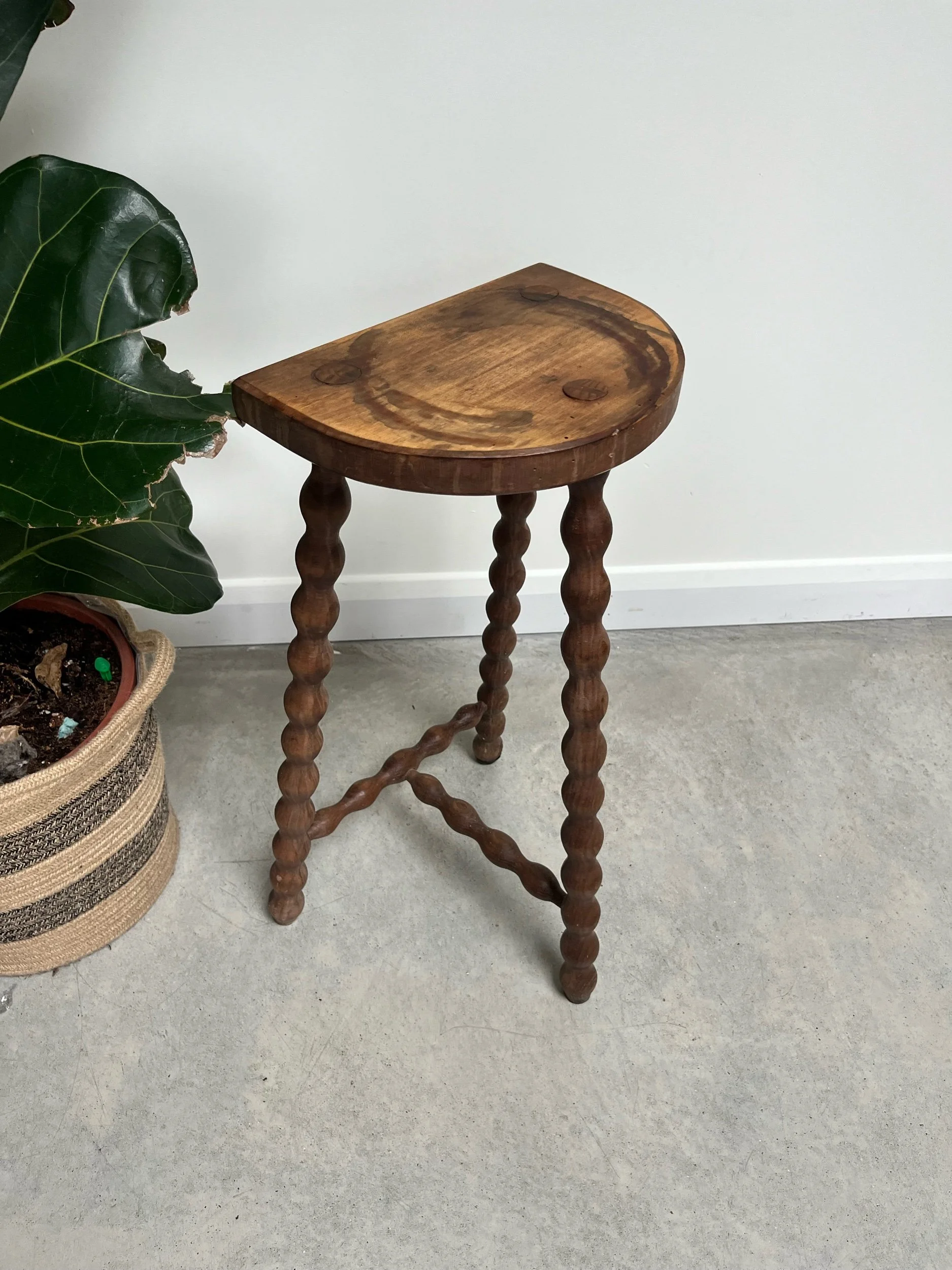 Vintage Tall French Demi Lune Tripod Bobbin Leg Milking Stool Plant Stand