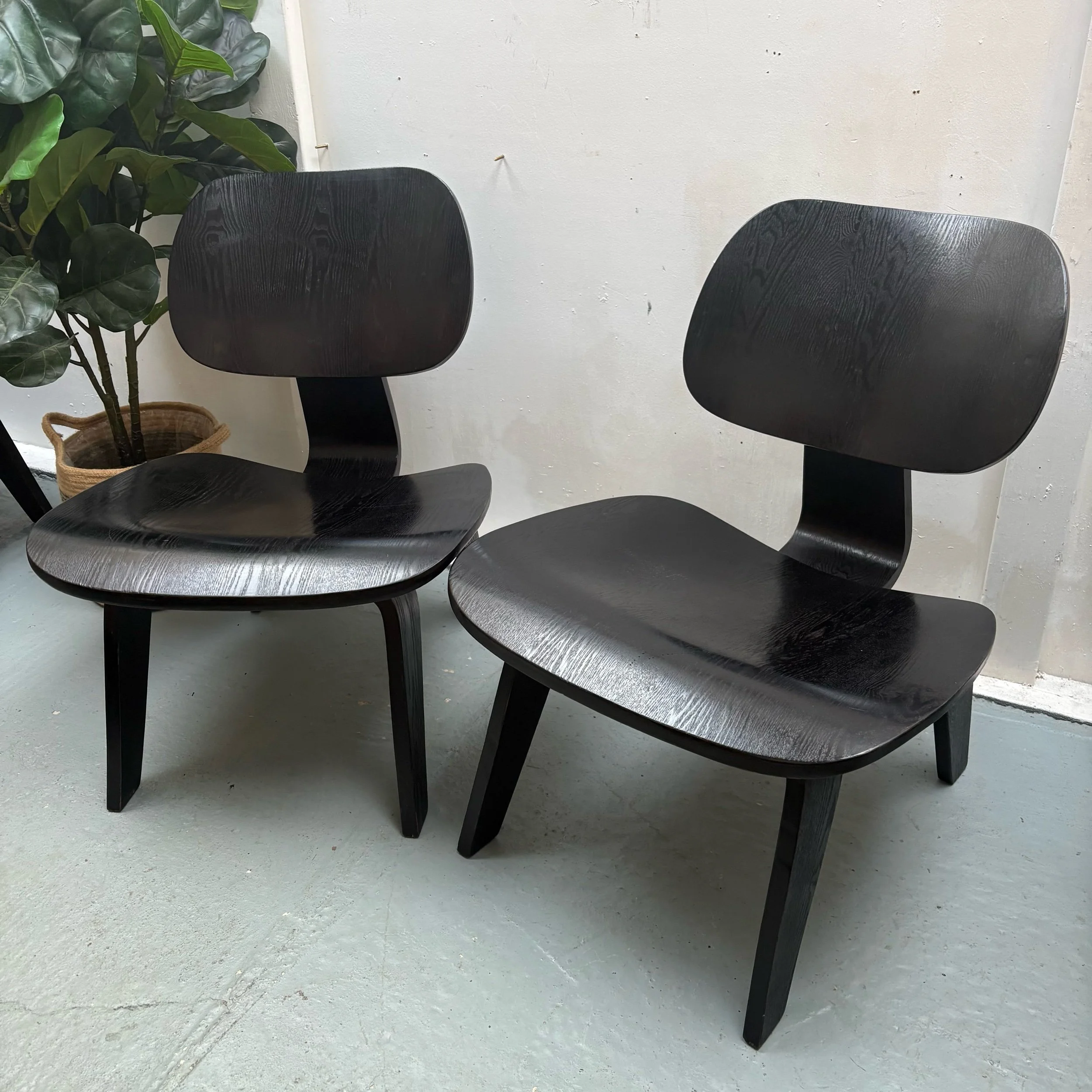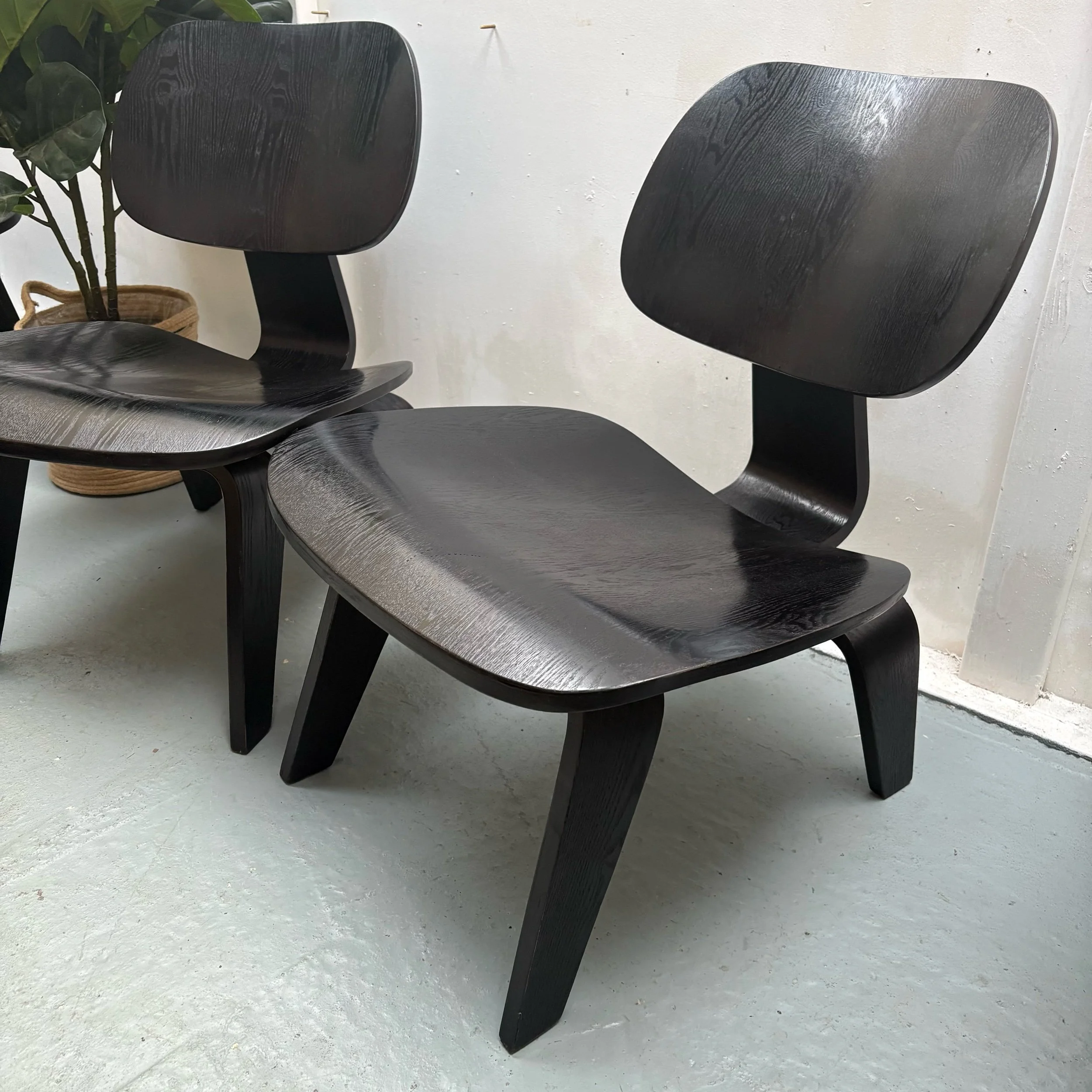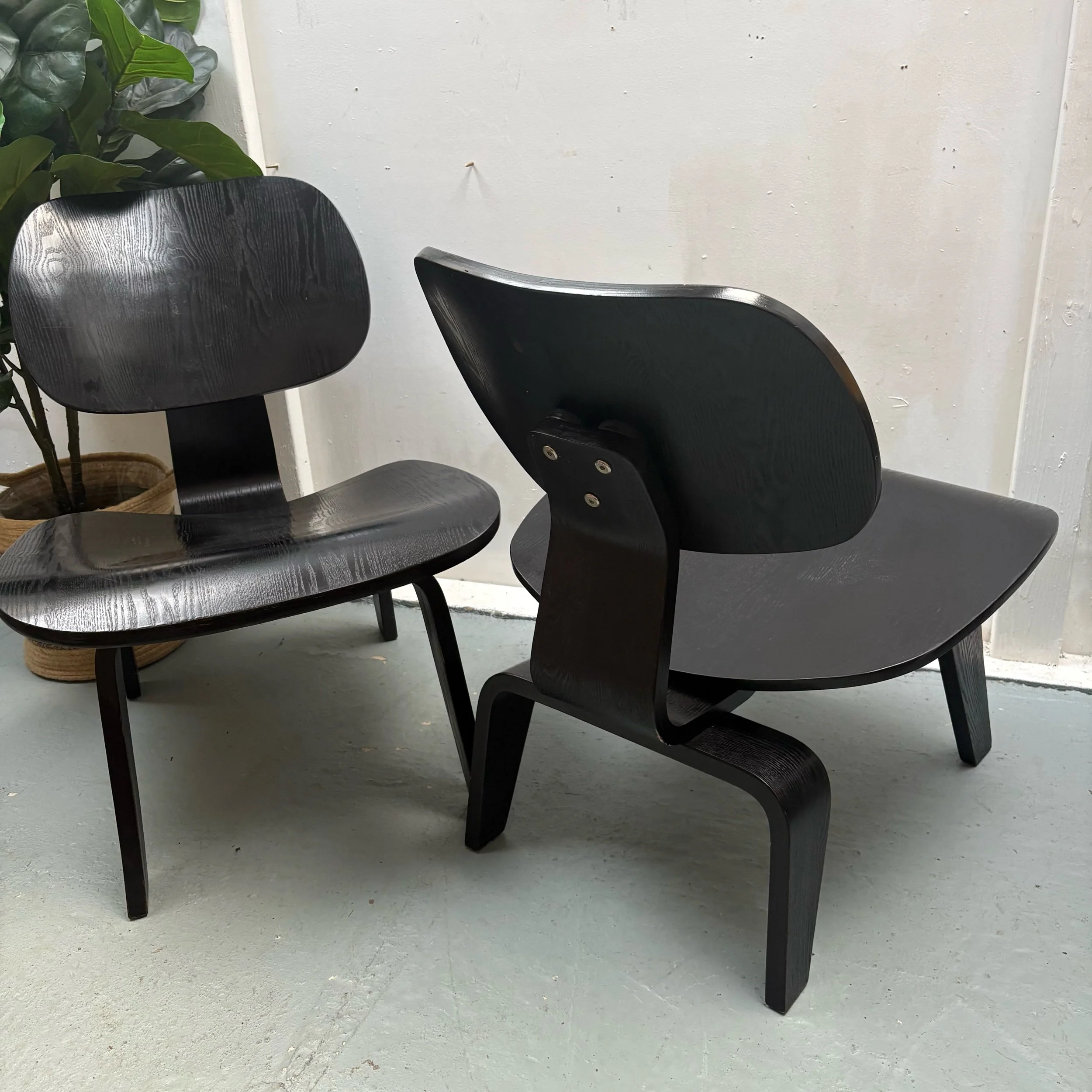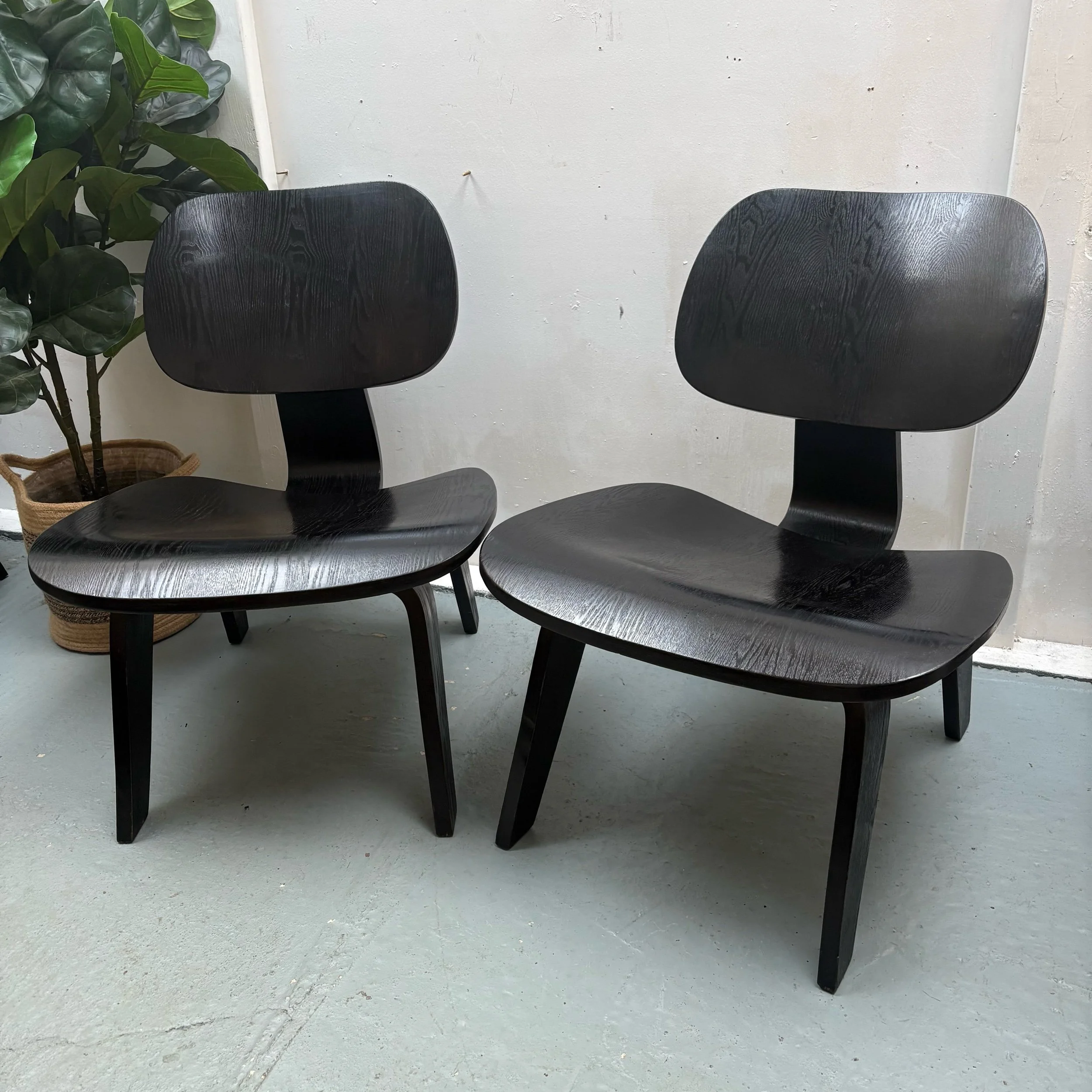 Pair Vintage Black Charles & Ray Eames Vitra Lounge Chair Herman Miller 1950s