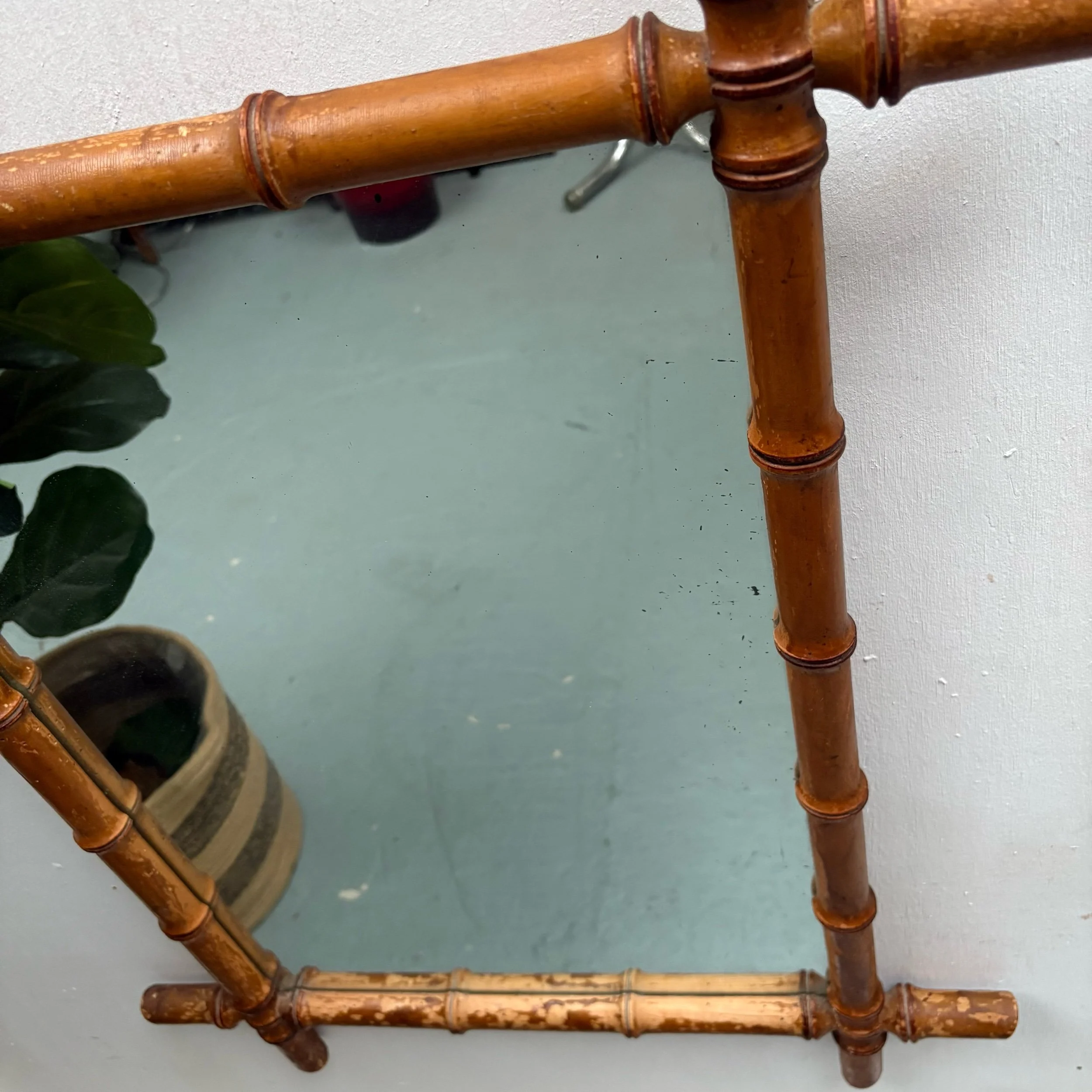 This vintage wooden faux bamboo French wall mirrors features a classic rectangular shape with a mirrored finish.