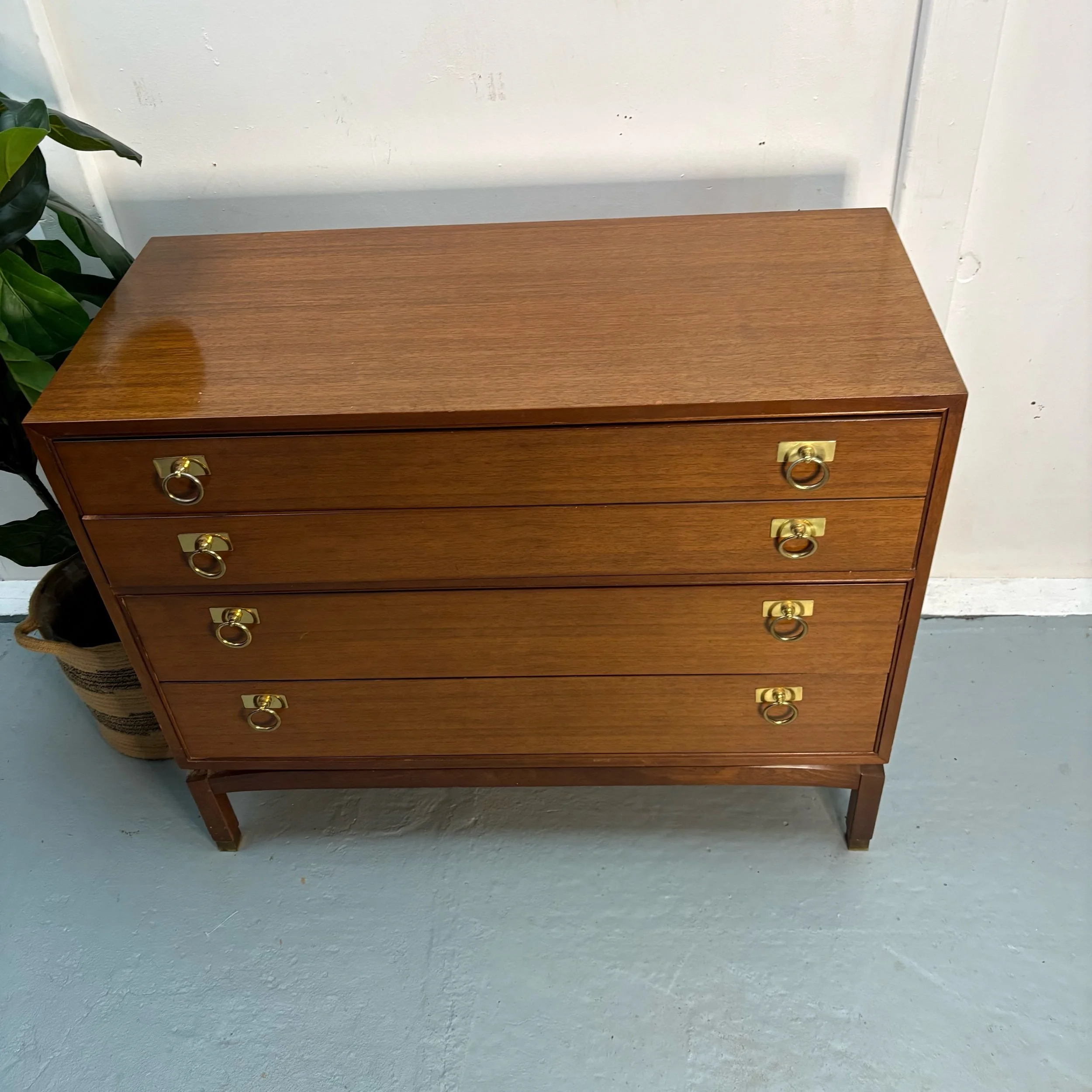 Midcentury E Gomme G Plan Librenza Teak Chest of 4 Drawers with Brass Handles