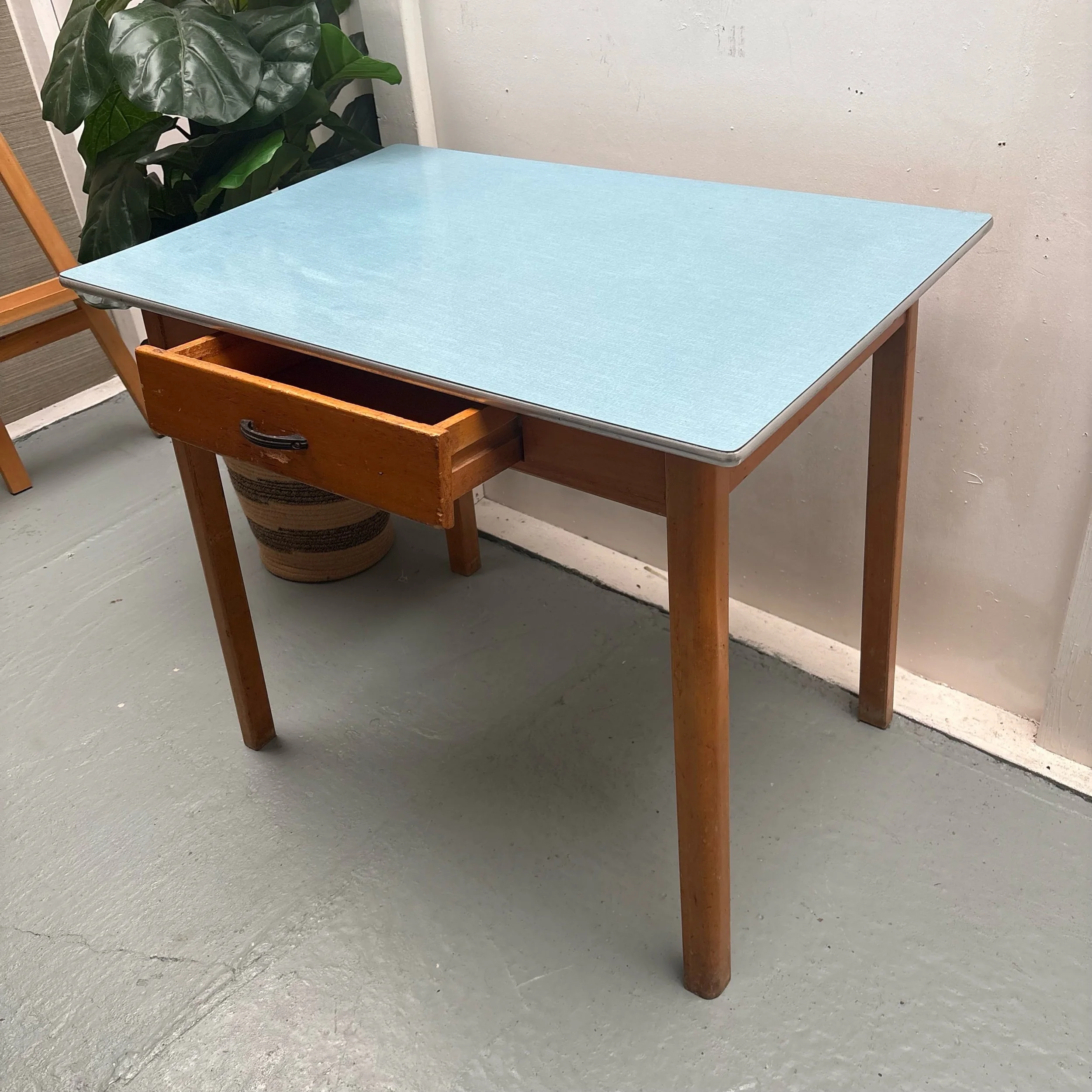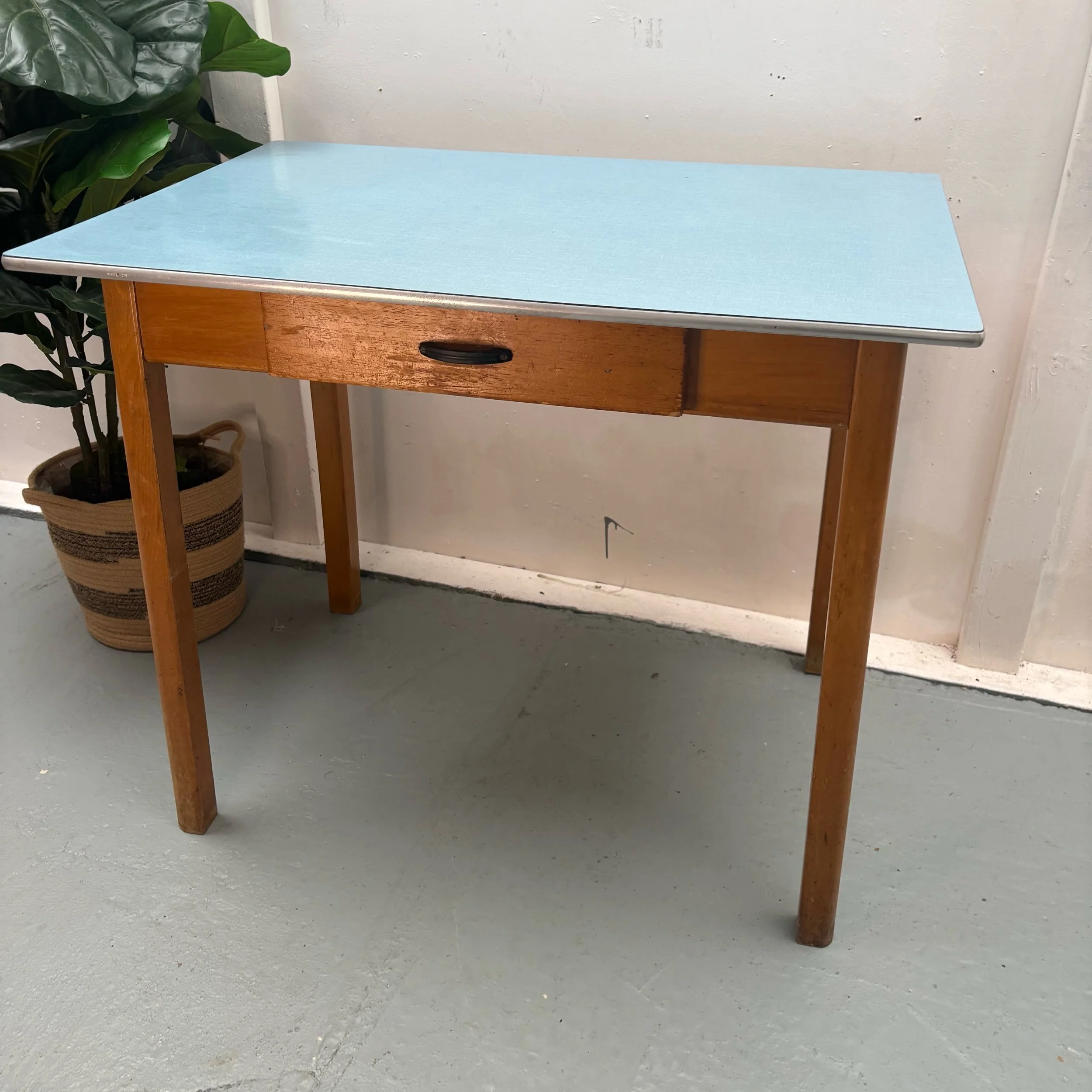 Blue Formica Kitchen Dining Table Mid Century Kitsch 1960s Retro