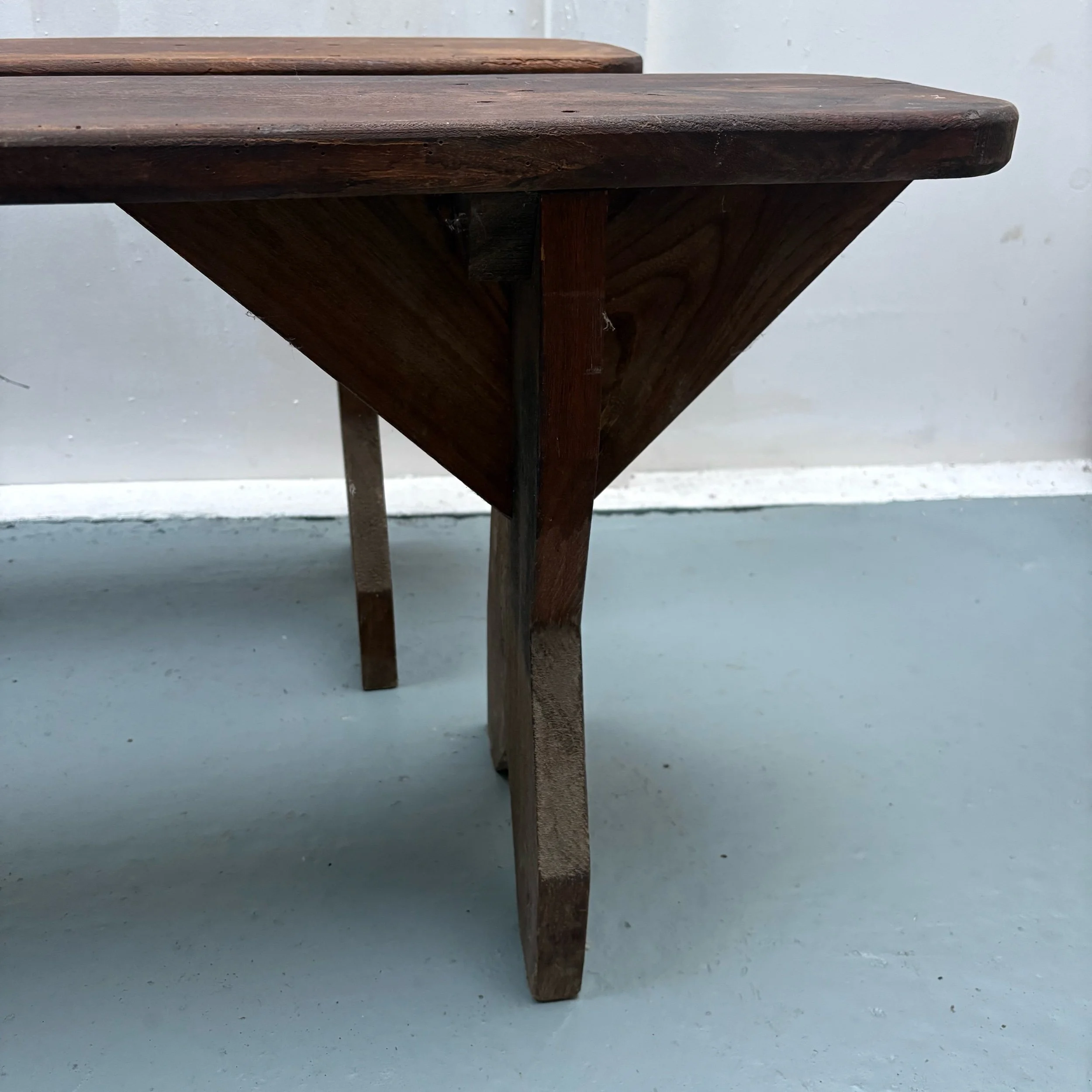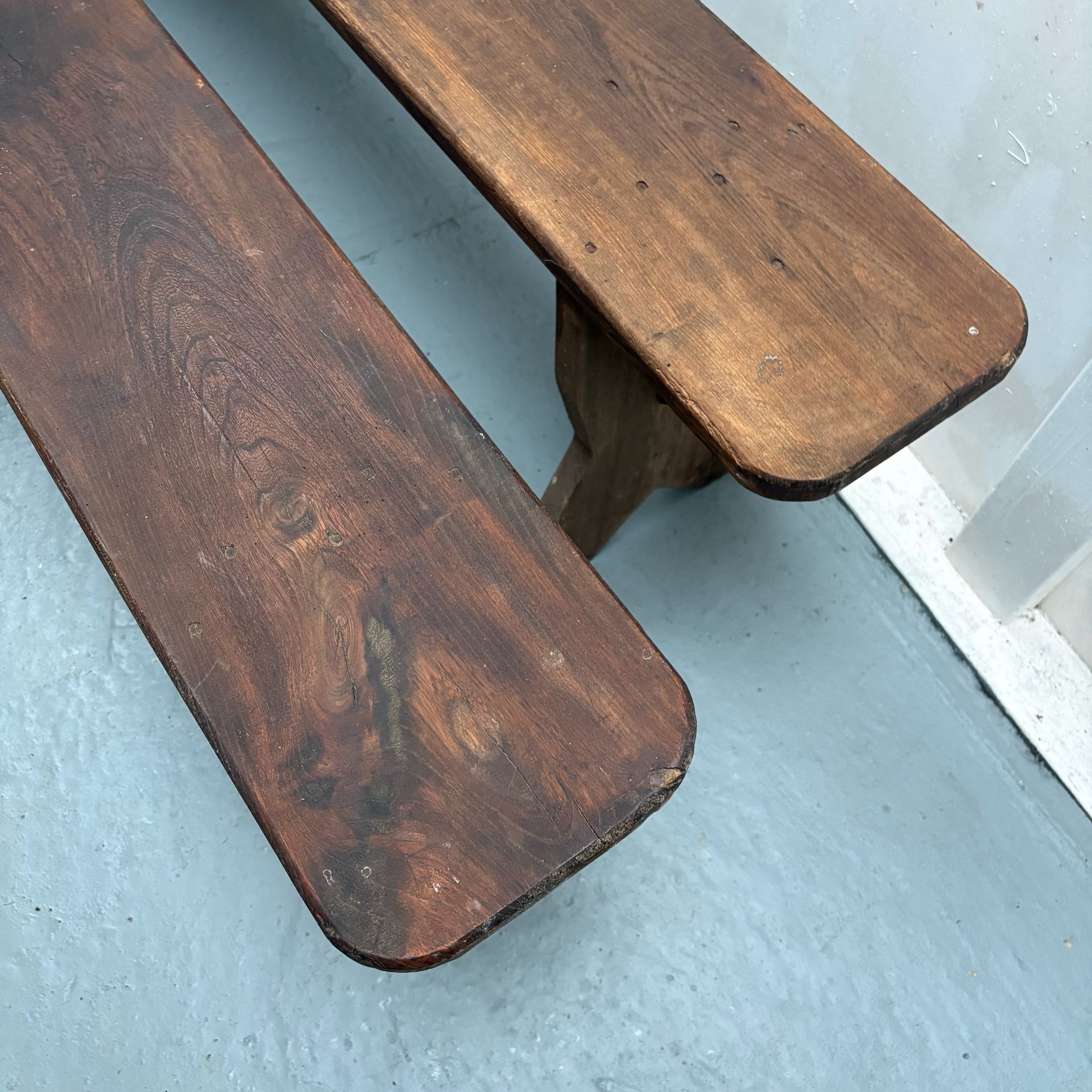 Pair Of Vintage French Monastery Style Elm 1.5m Long Kitchen Benches Marked SFR