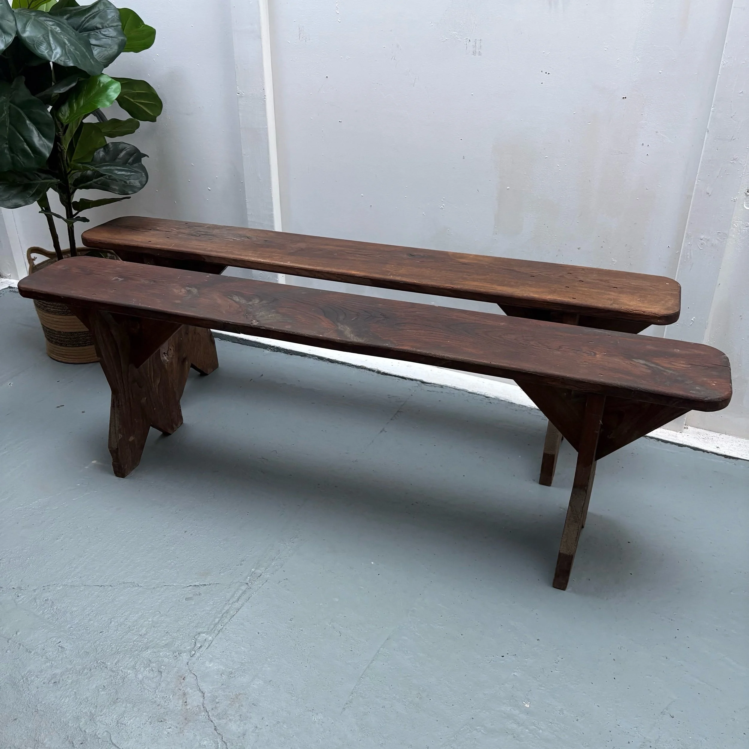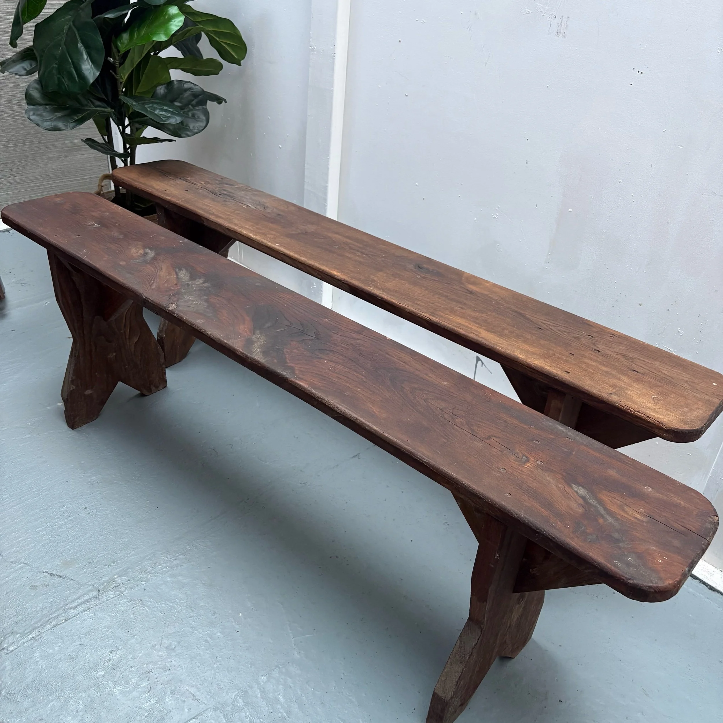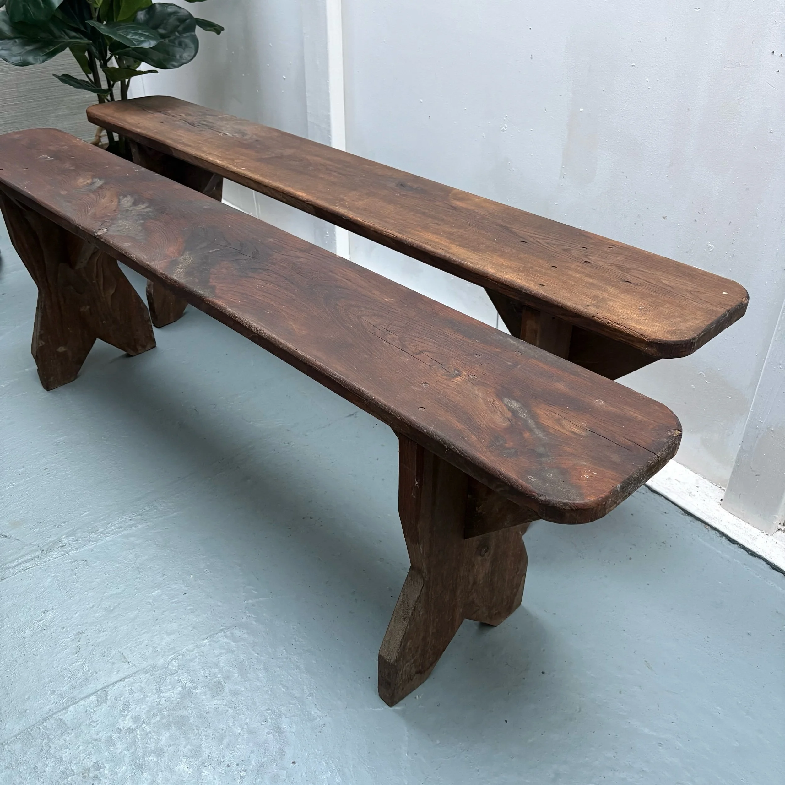 This is a pair of vintage French monastery style elm farmhouse kitchen benches, each measuring 1.5m in length.