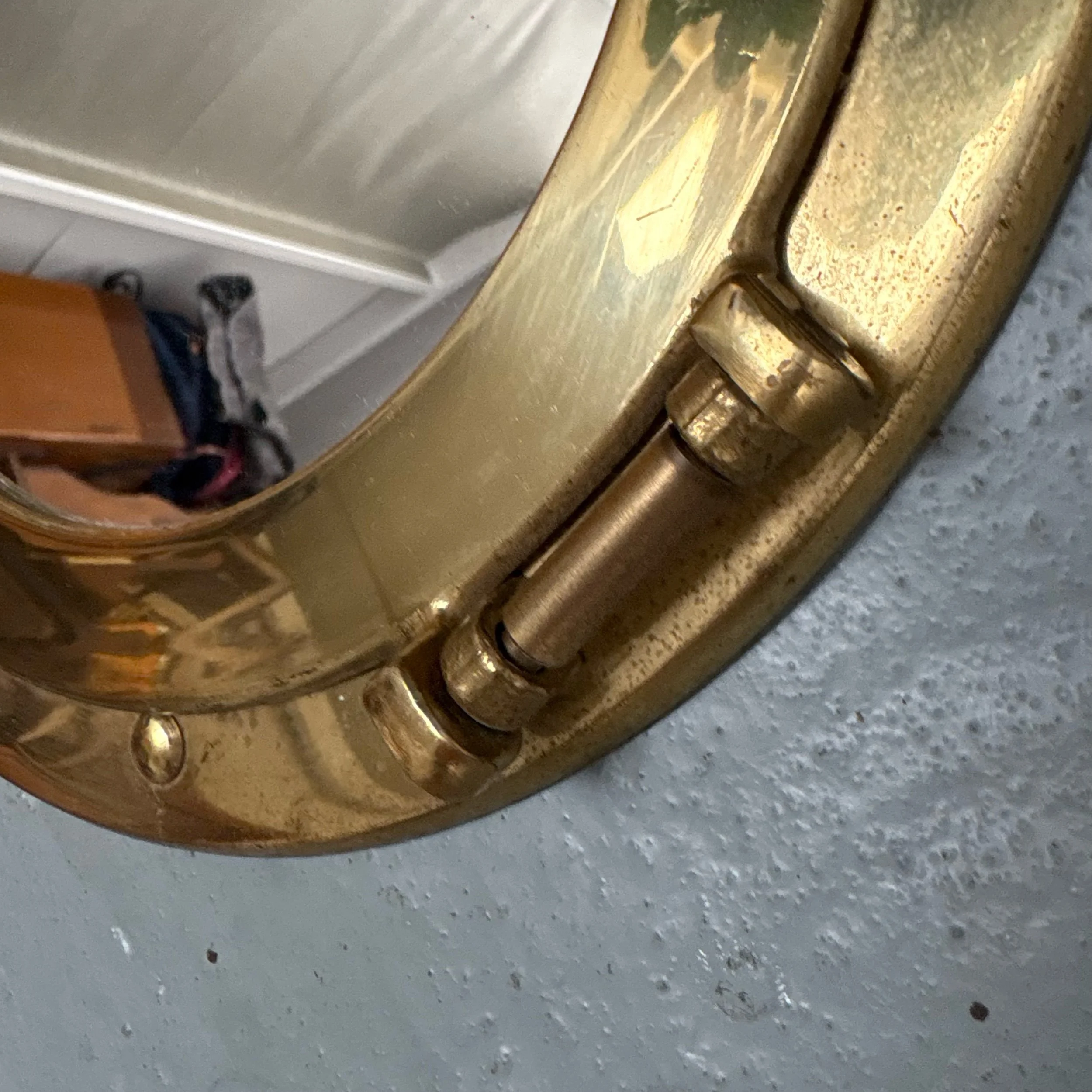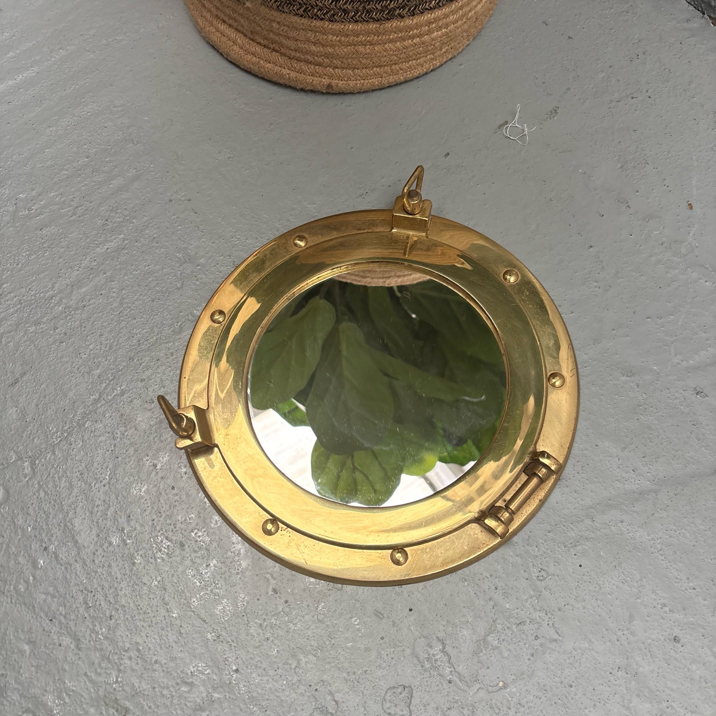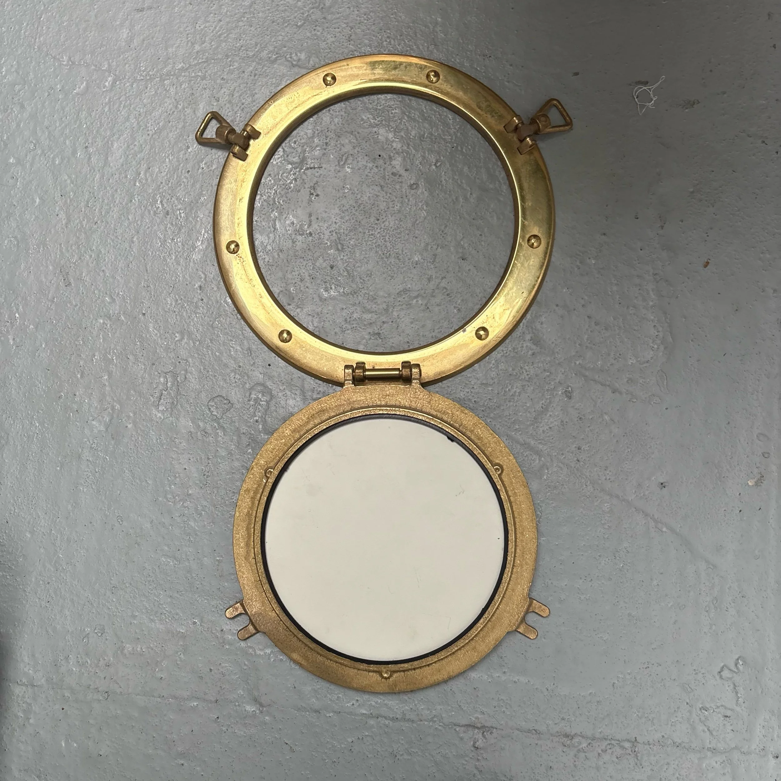 This product is a 10" vintage French nautical antique porthole wall mirror.