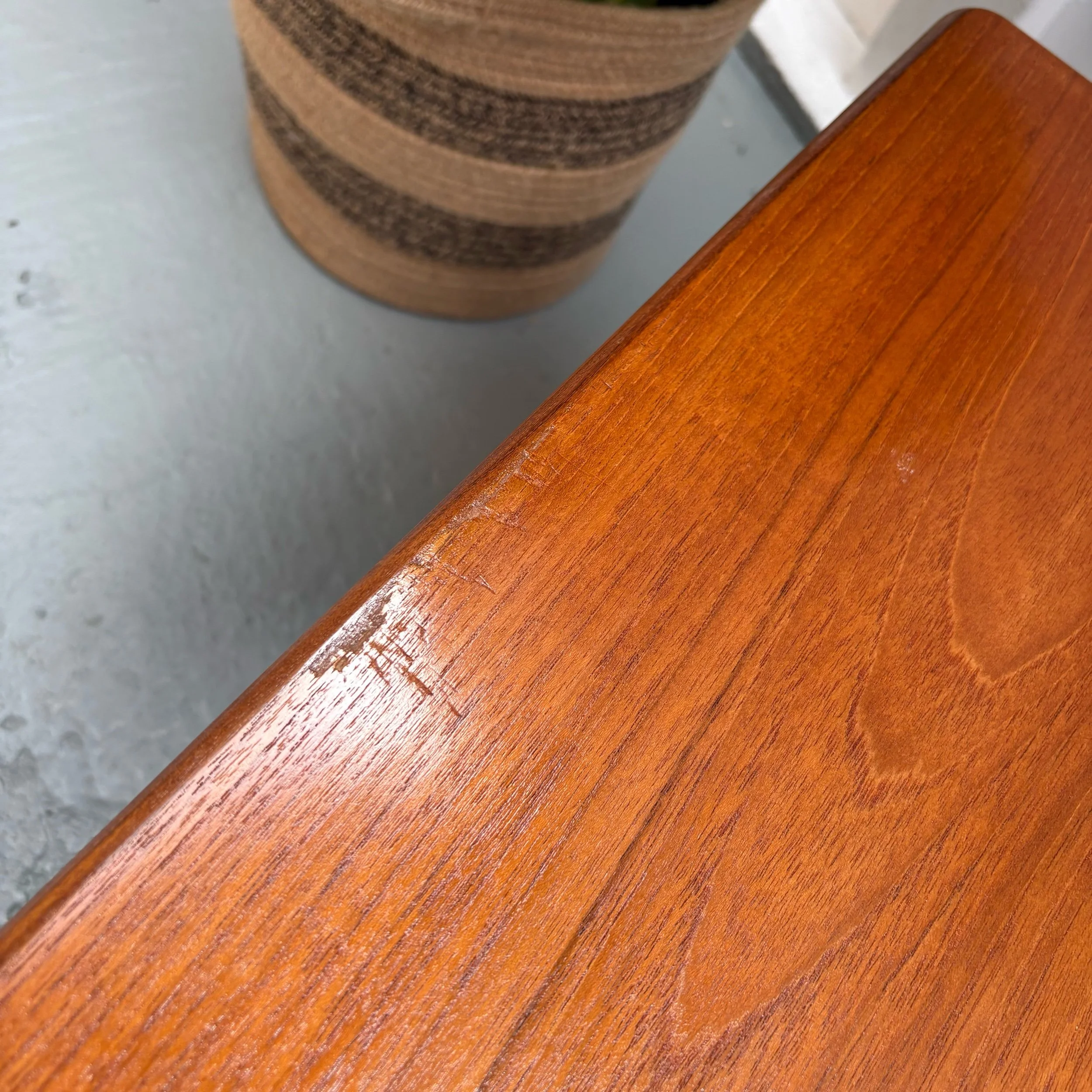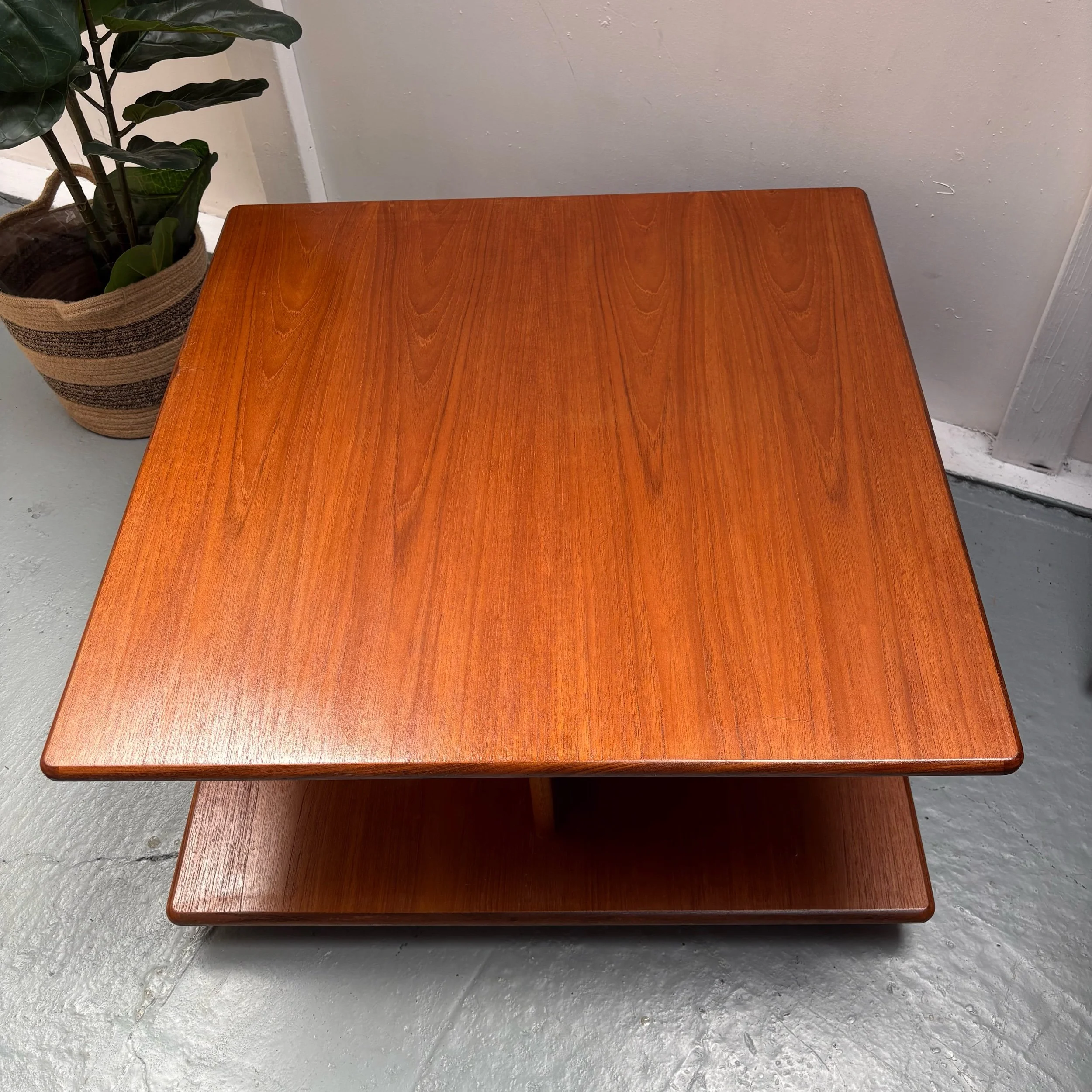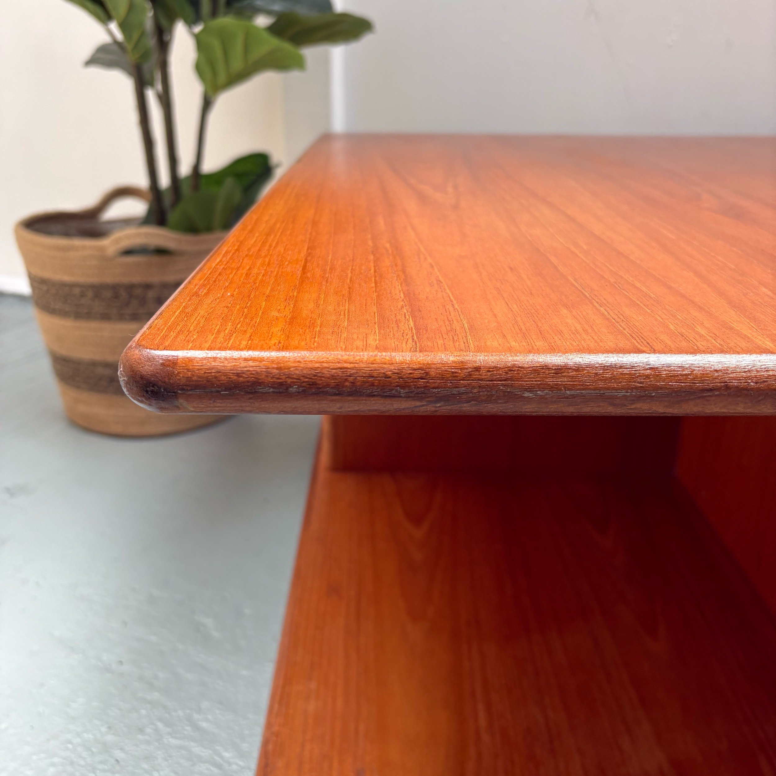 This original teak coffee table has a tabletop material of teak, making it a stylish and functional addition to any living room.