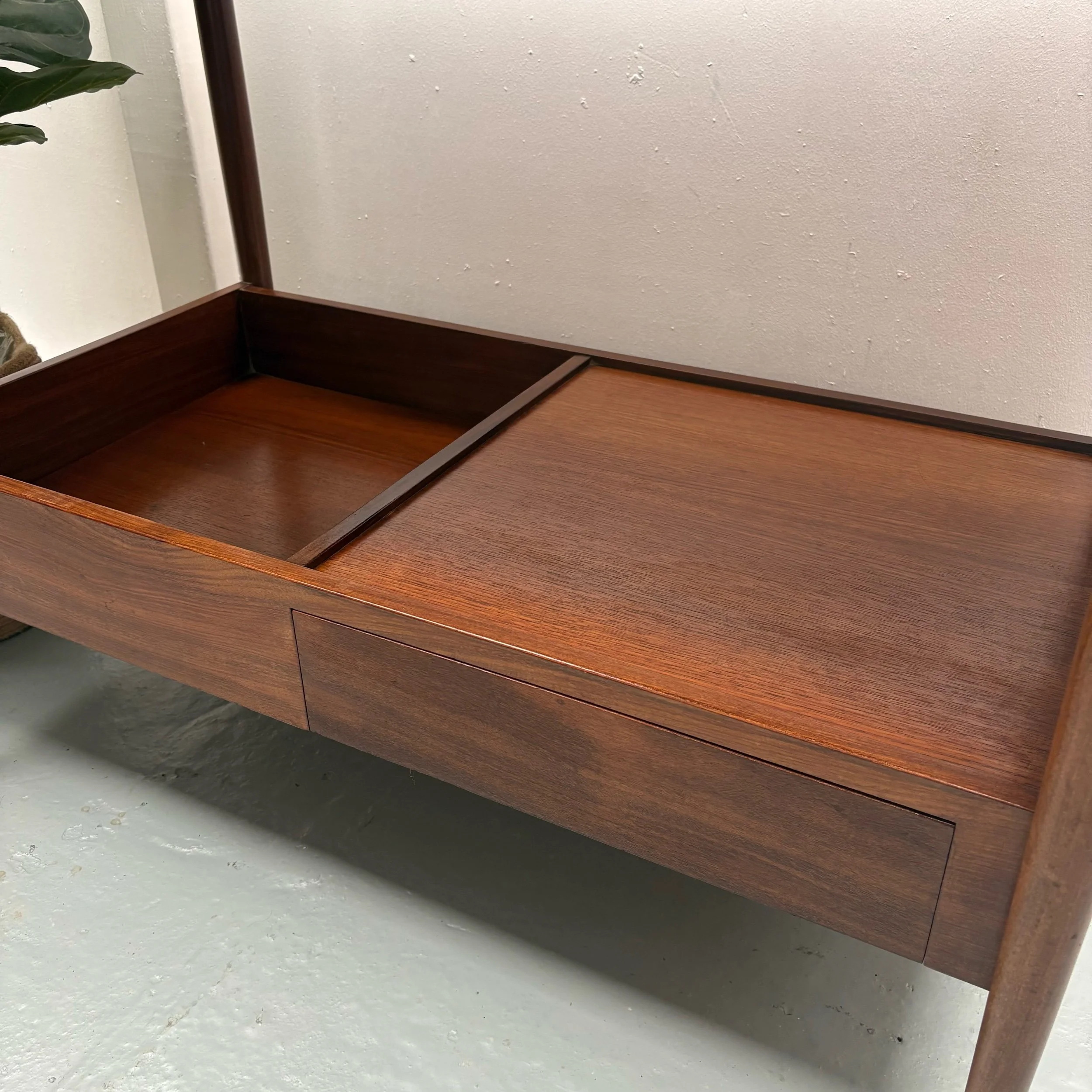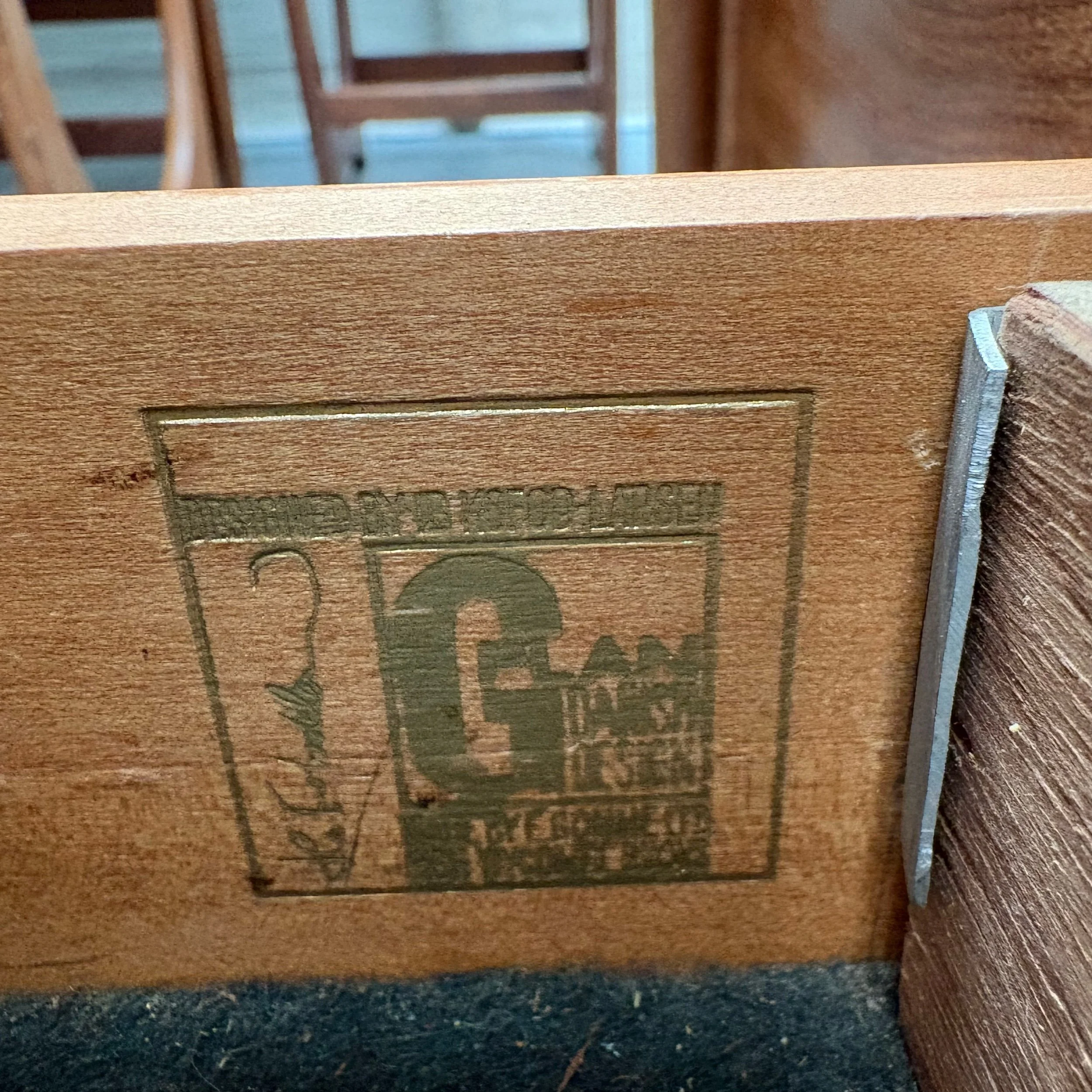 This wine cooler has a handle finish also made of brass. The rich patina of the mahogany has been professionally restored and polished.