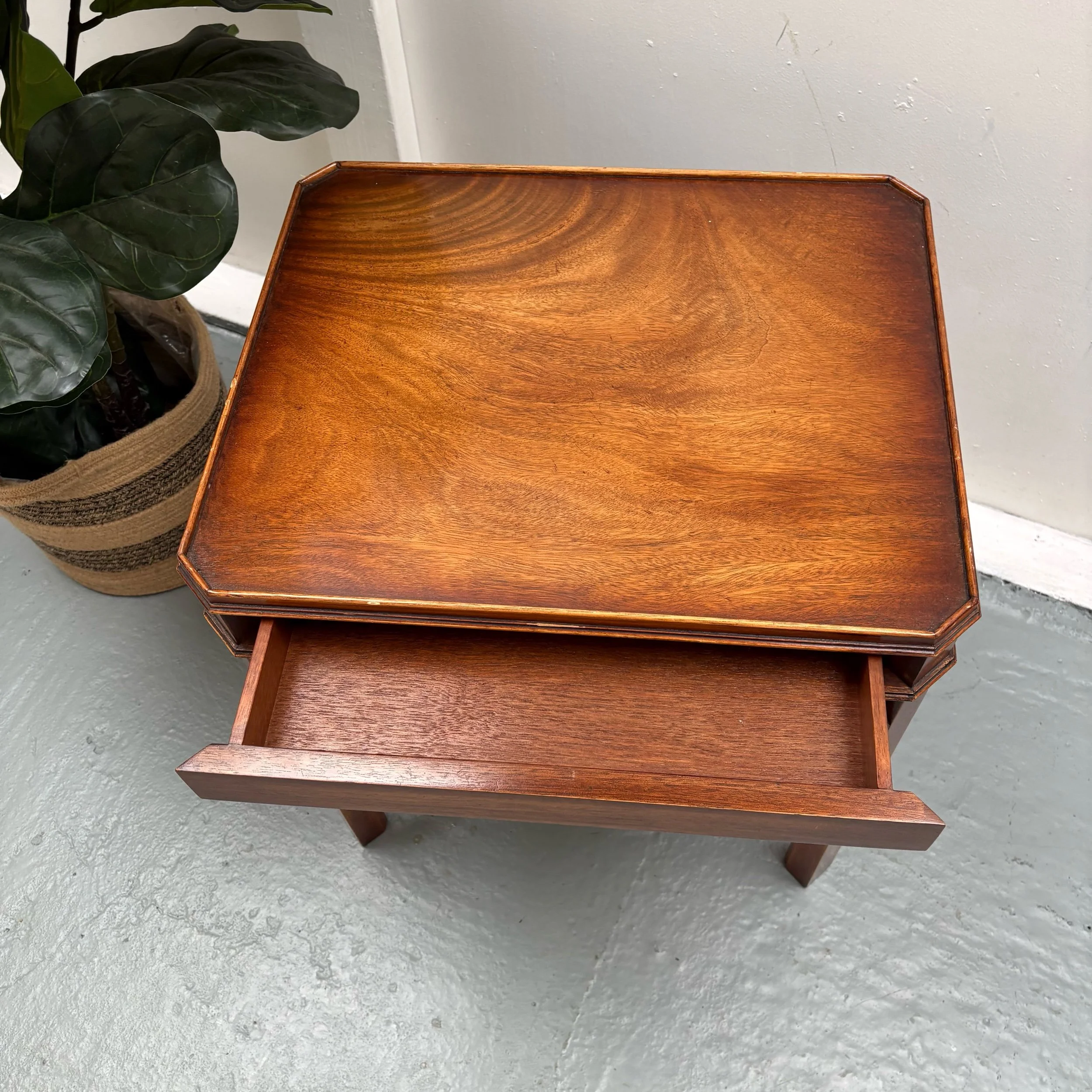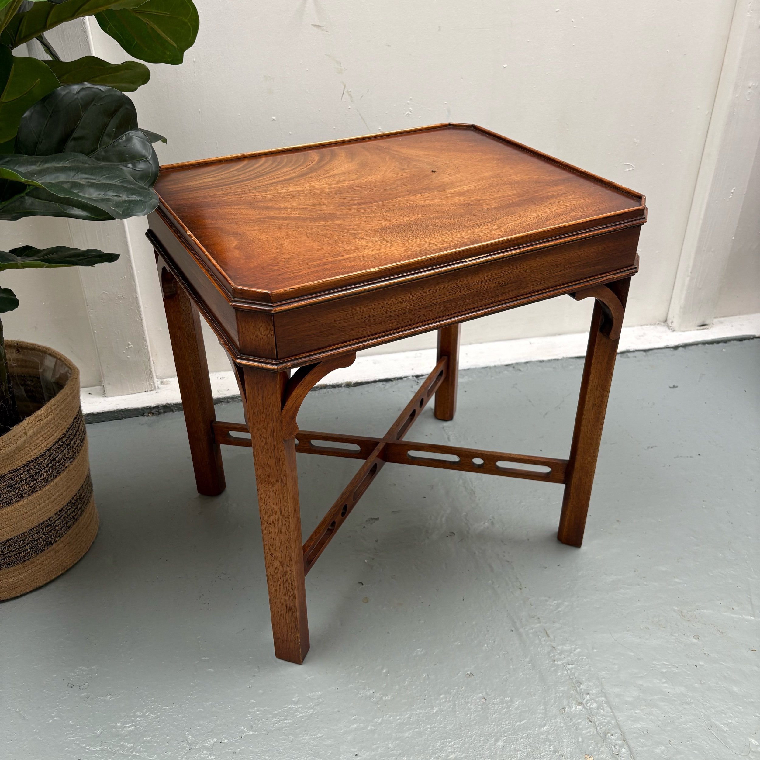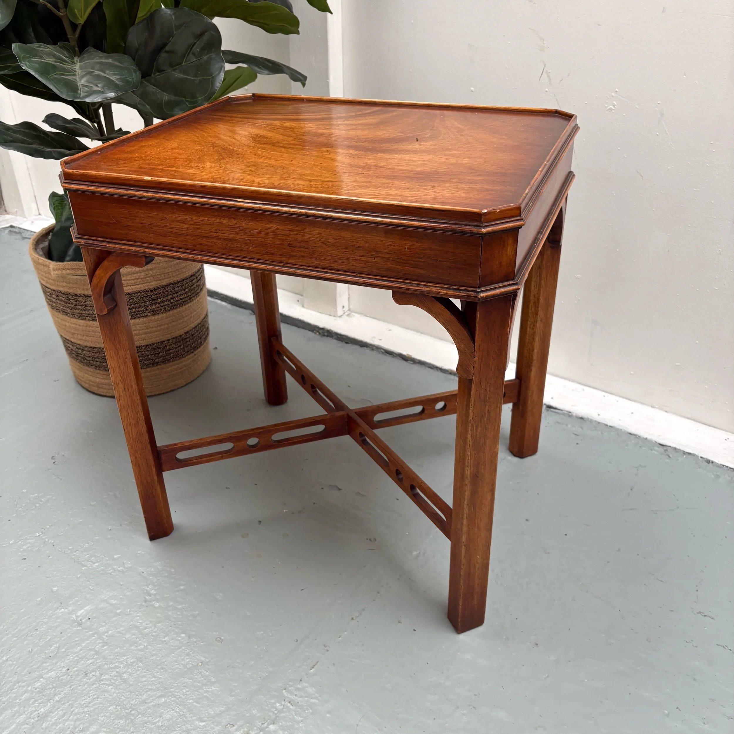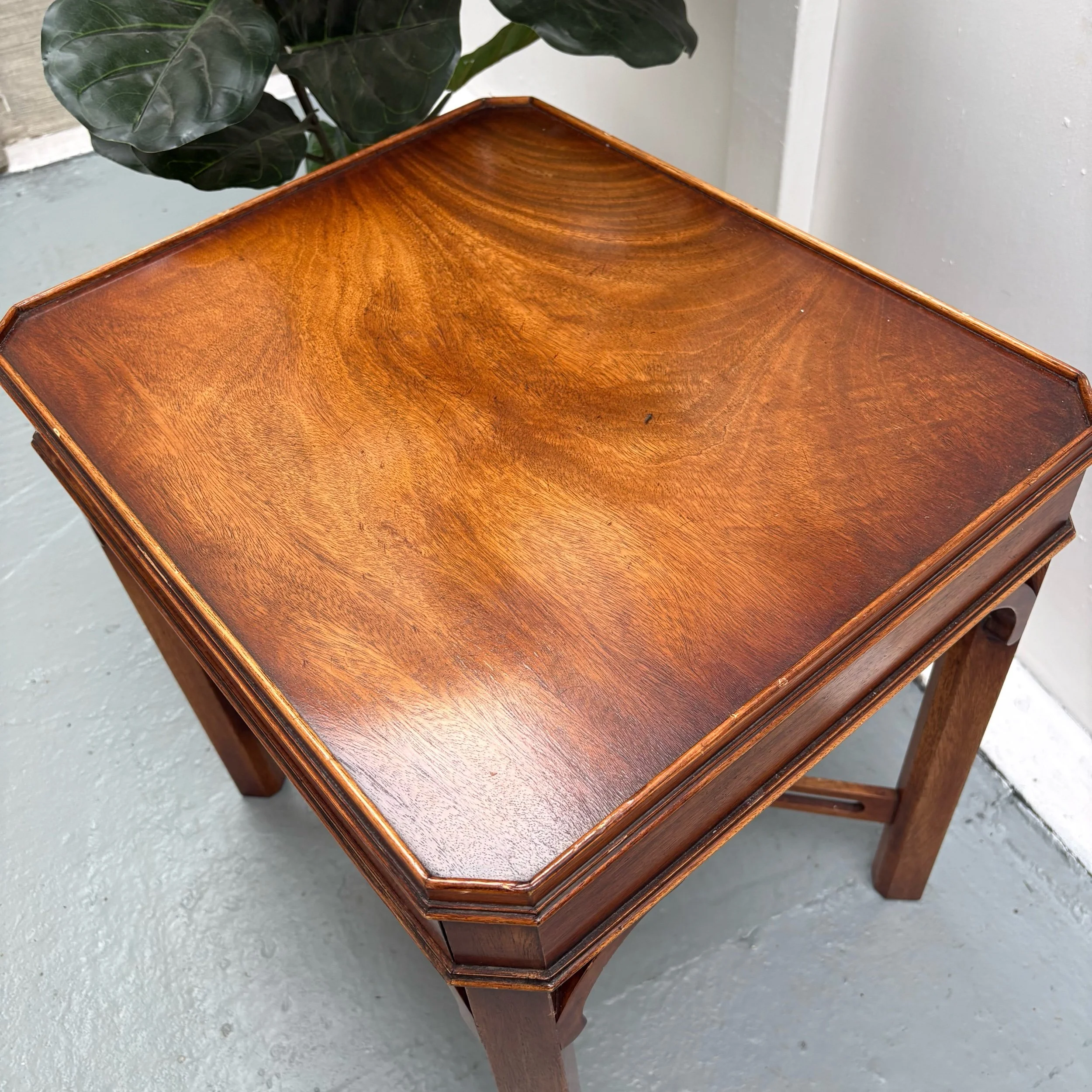 The Bevan Funnell Mahogany Side Table is a stunning example of Georgian revival furniture from England, made in the 1960s.