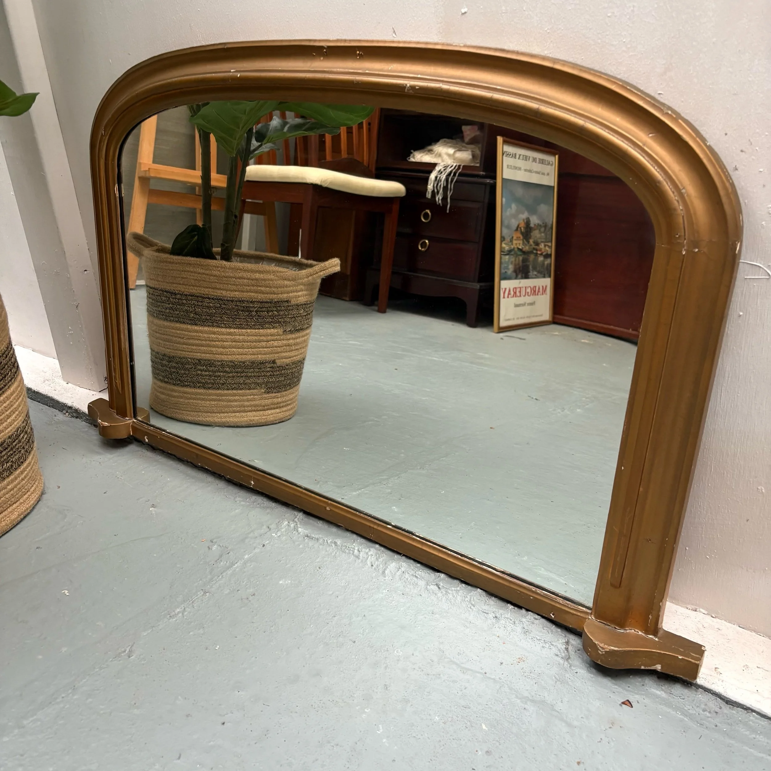 Victorian Original Shabby Dark Gold Overmantle Mirror