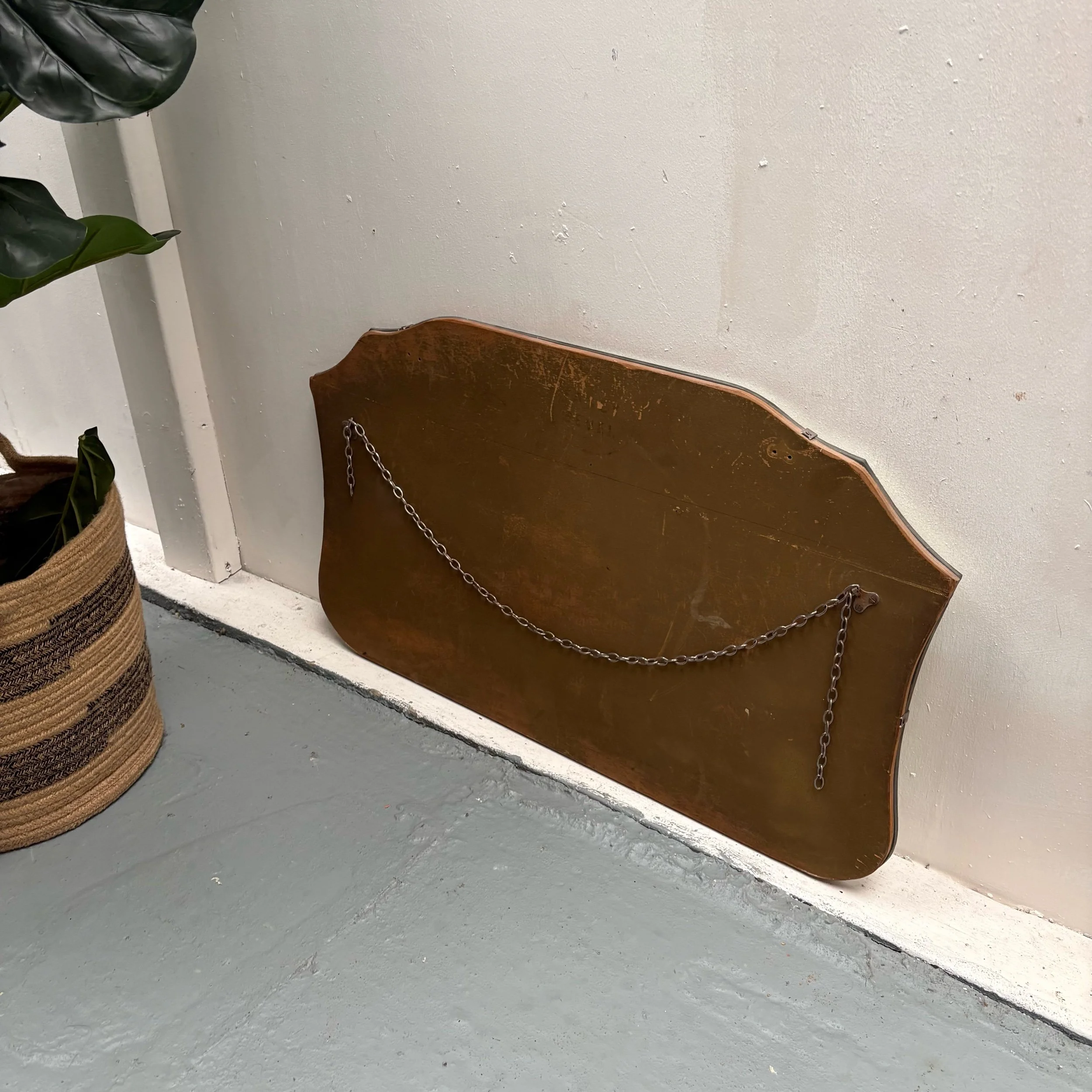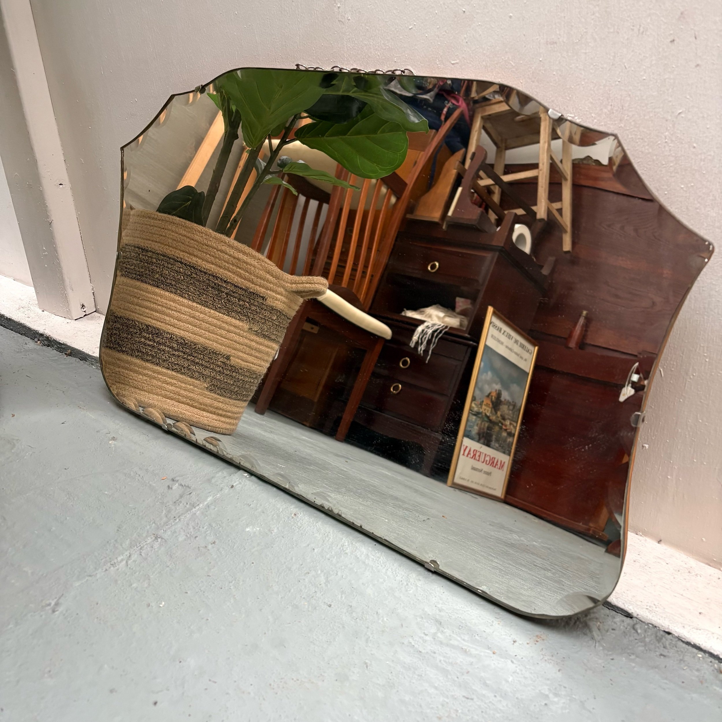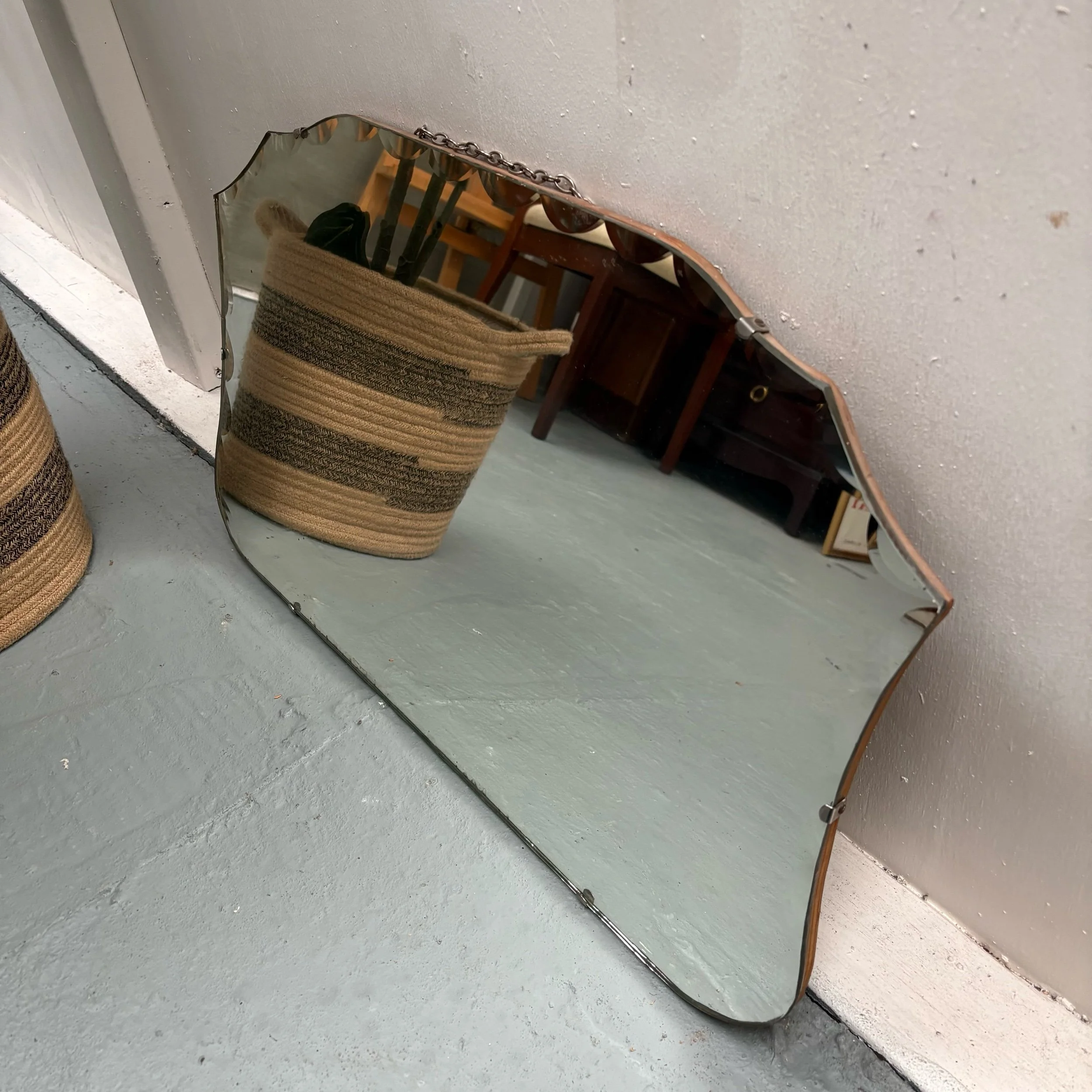 Art Deco Shield Mirror with Bevelled Scalloped Edge and Decorative Clips c.1930