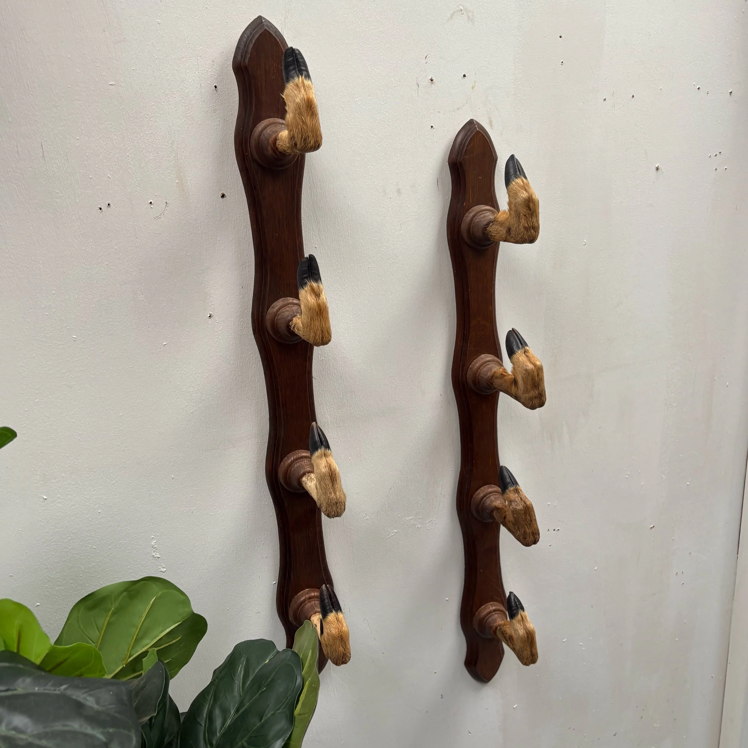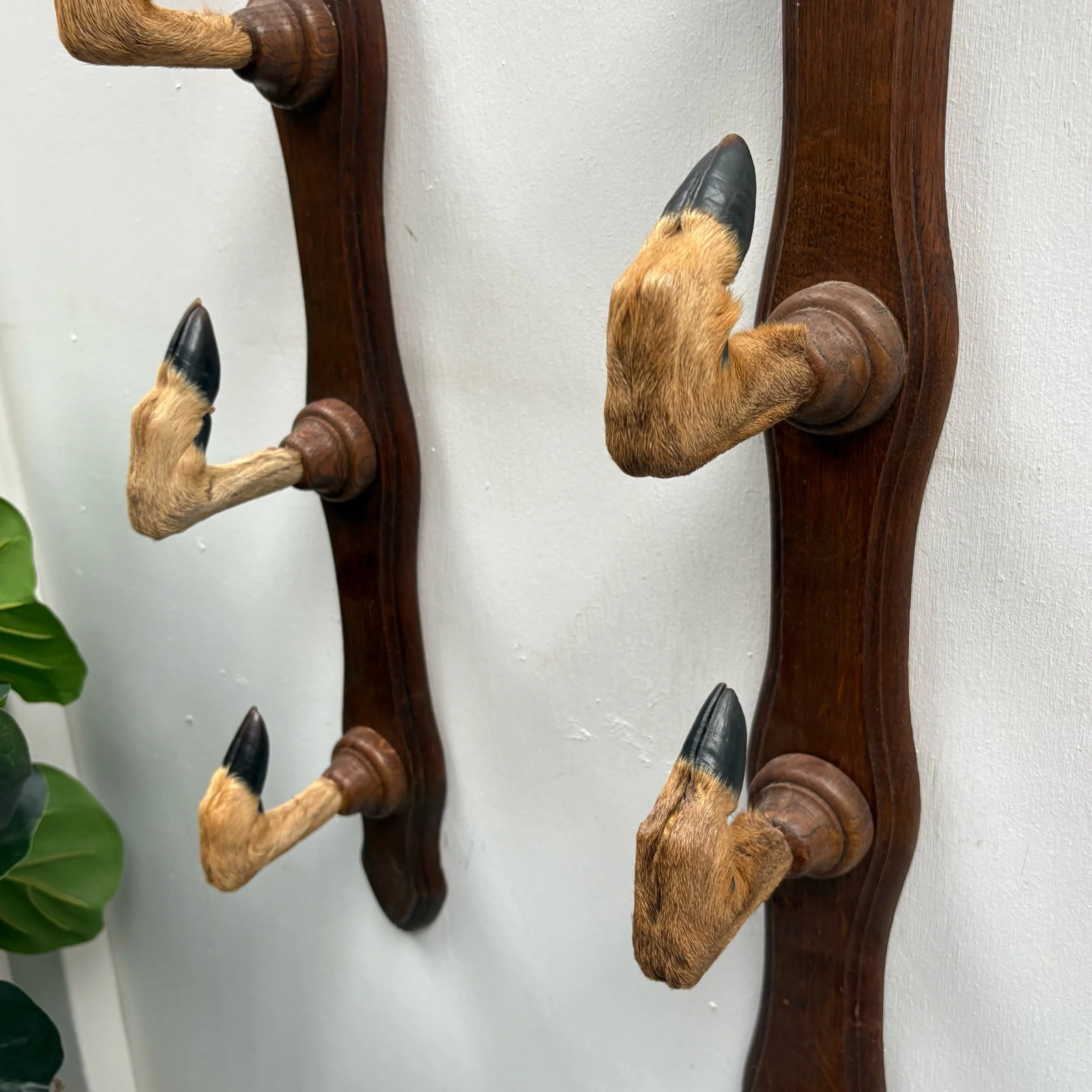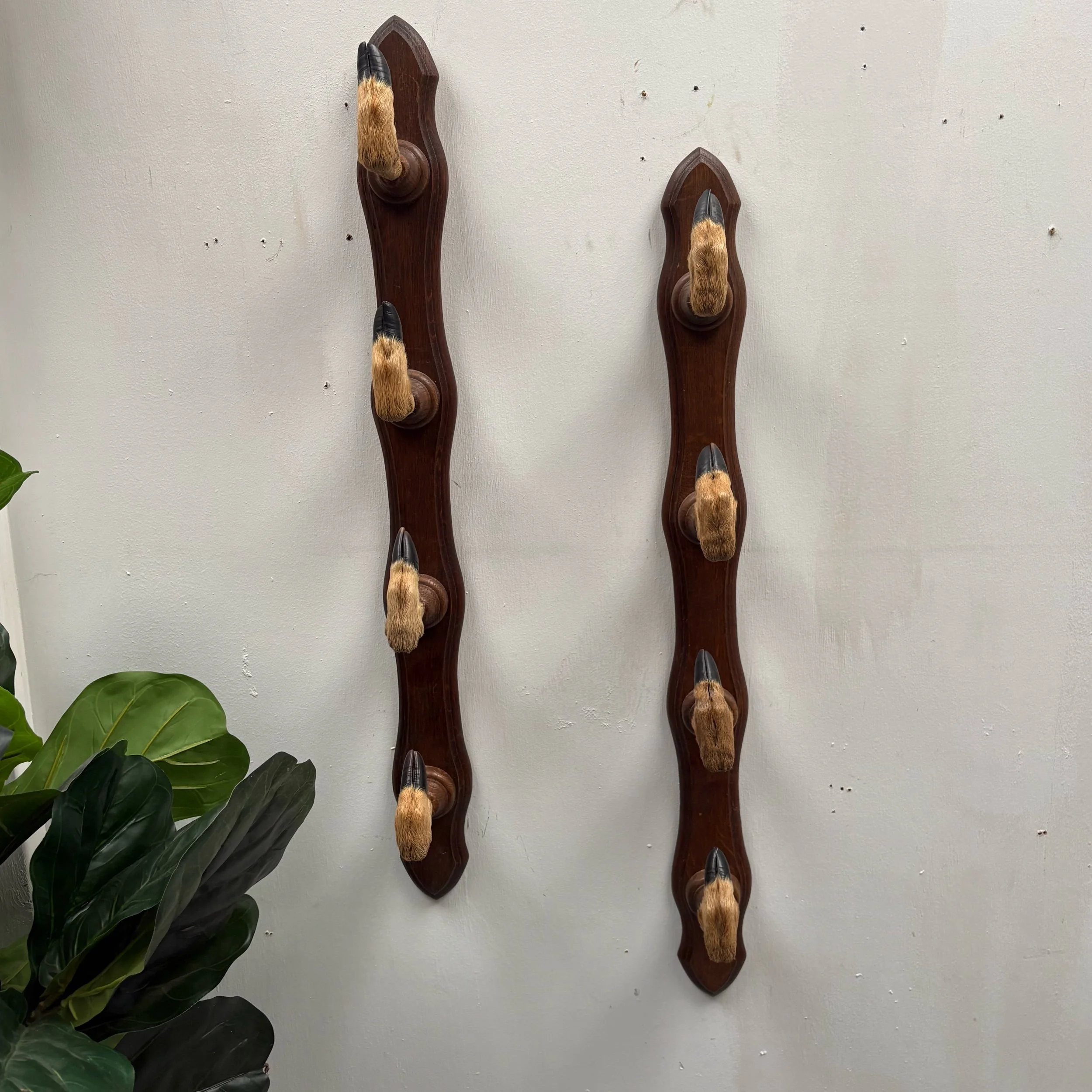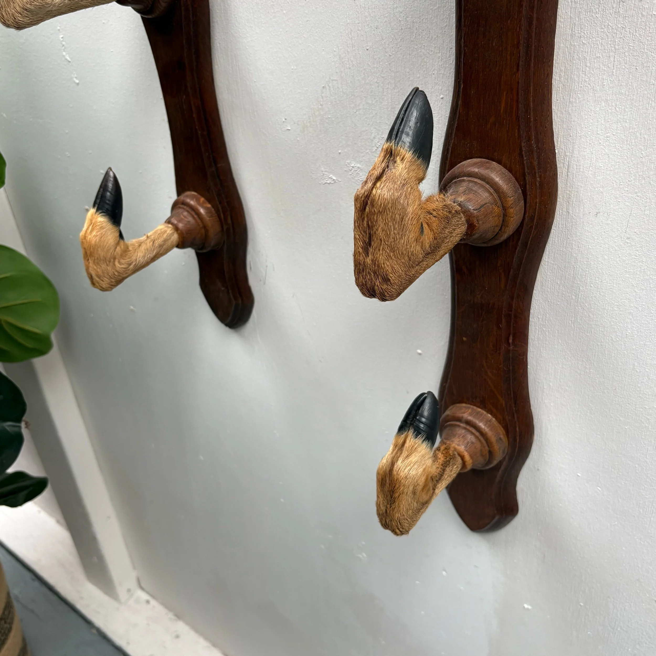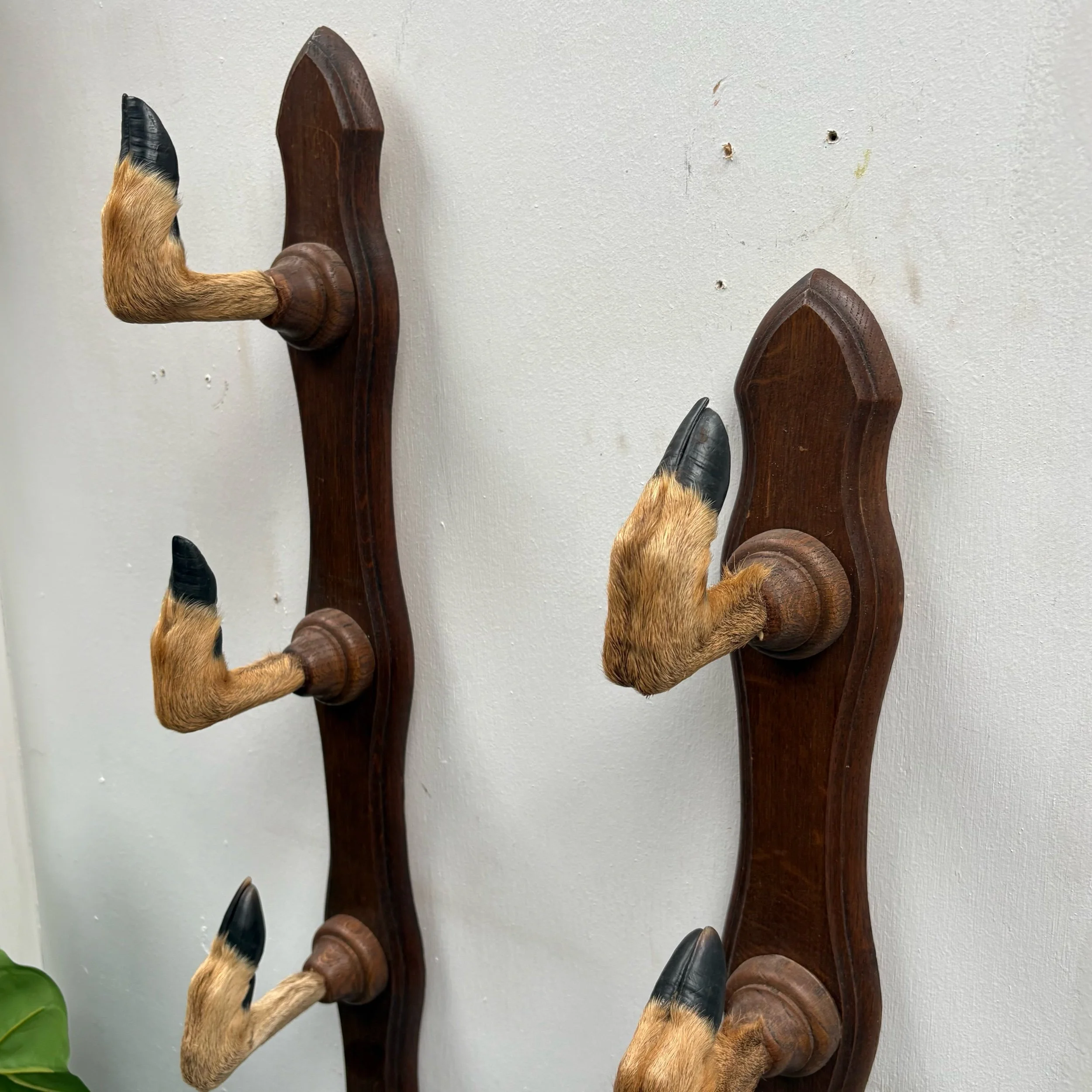 Pair 1940s Long French vintage Deer Hoof Taxidermy Rifle Rack Coat Hat Hooks