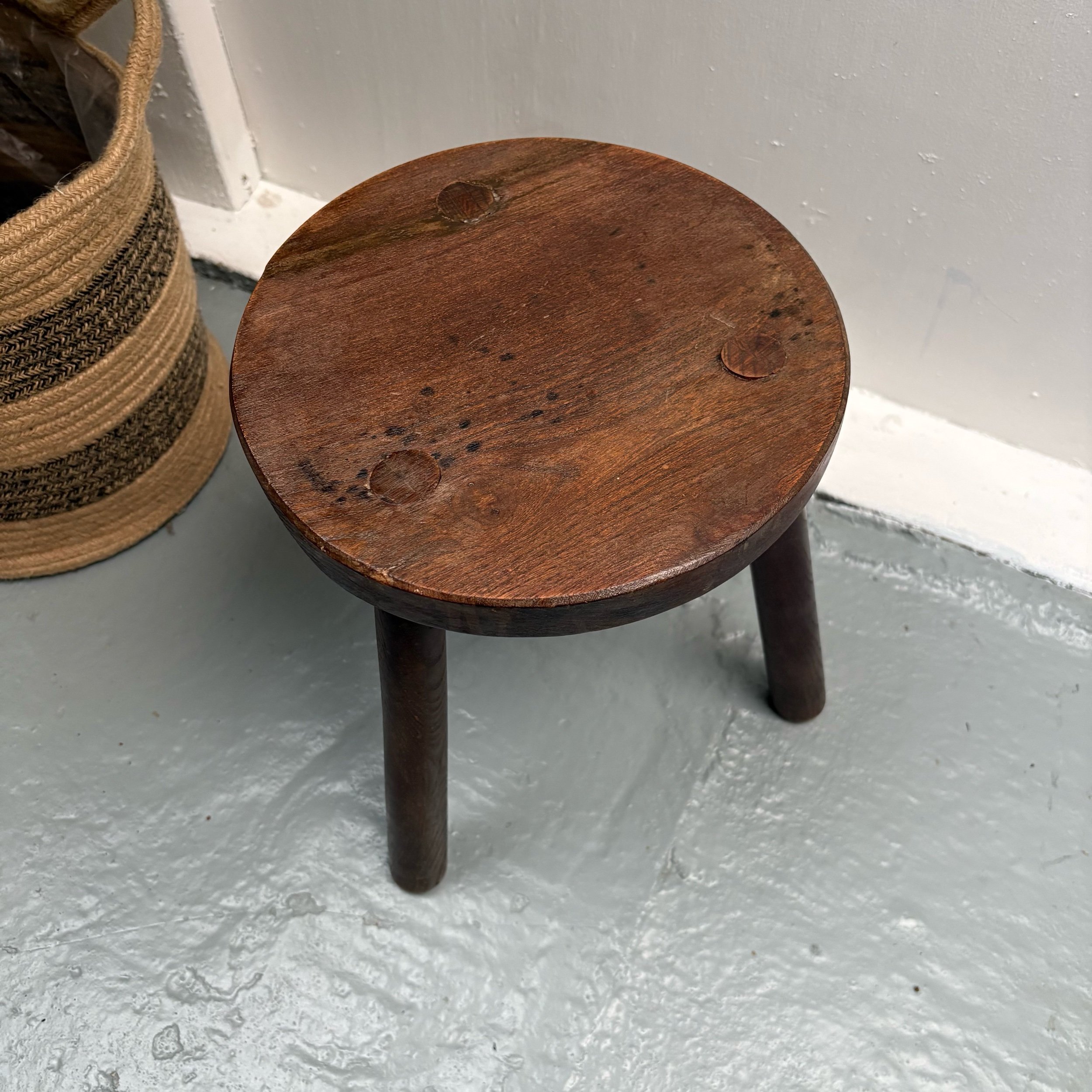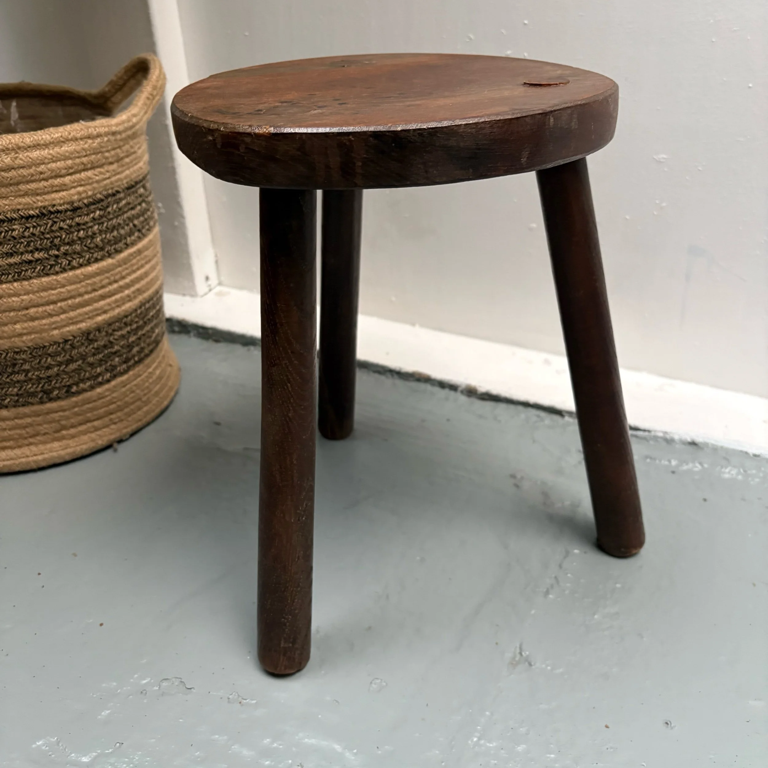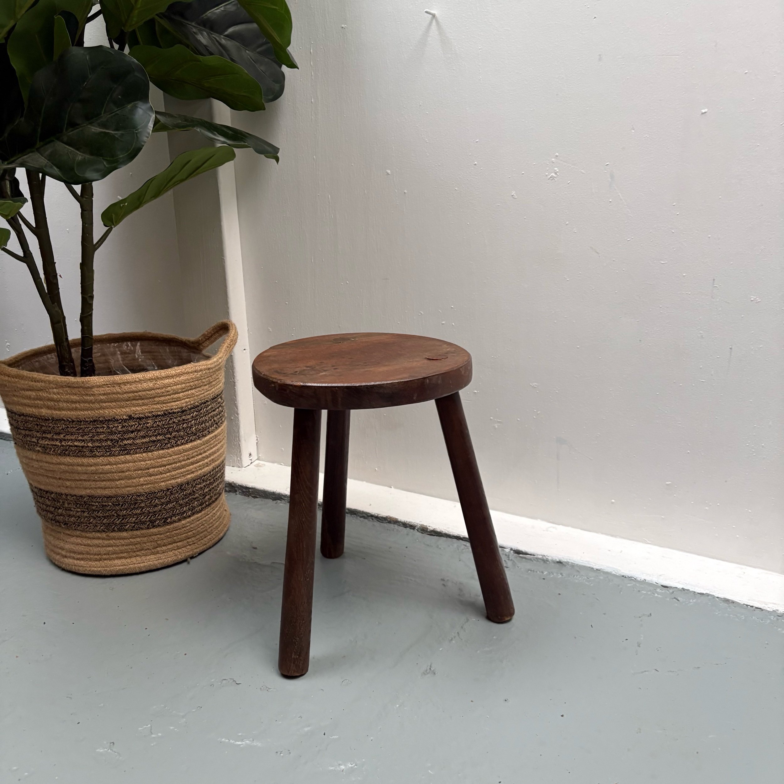 This vintage French tripod turned leg stool is a versatile piece of furniture