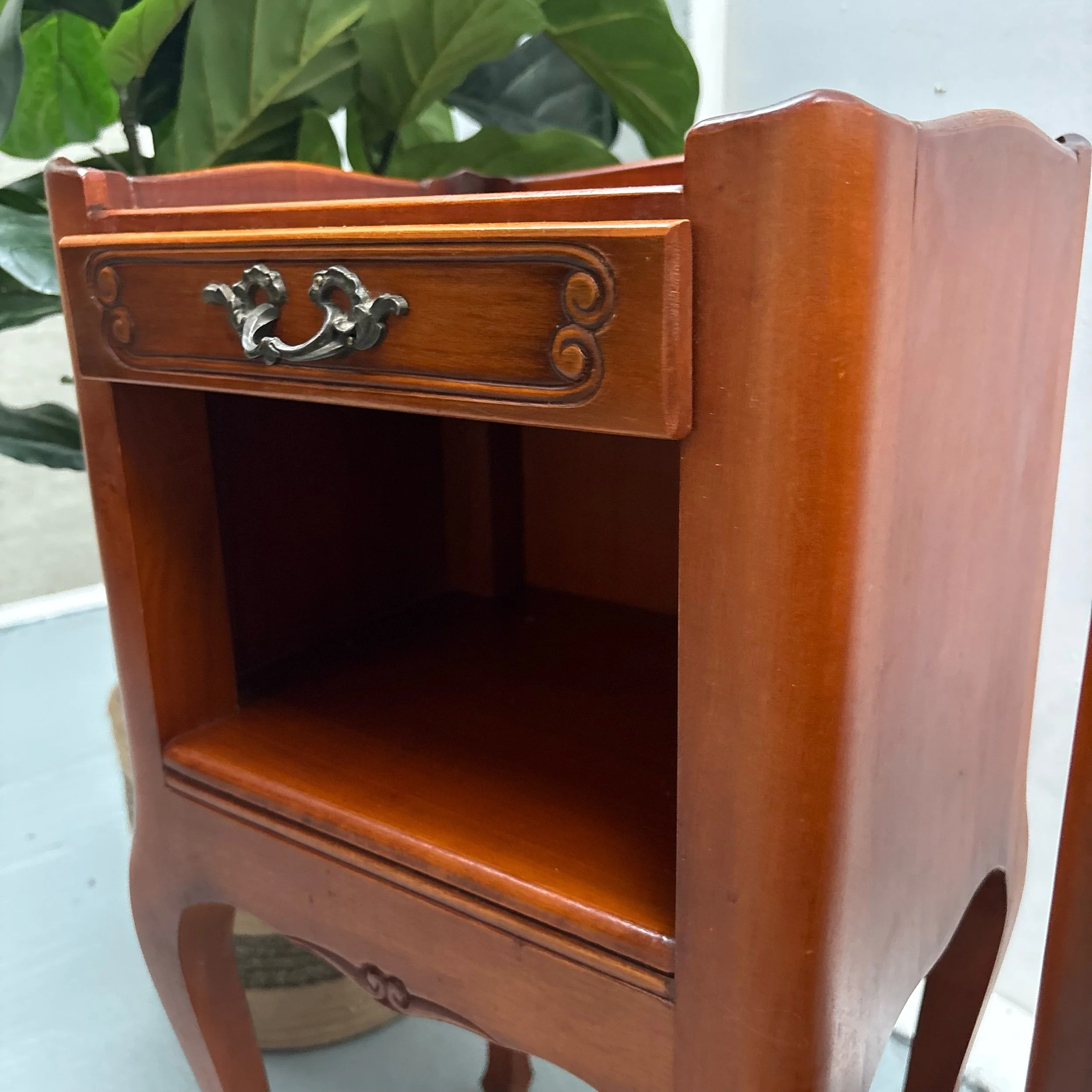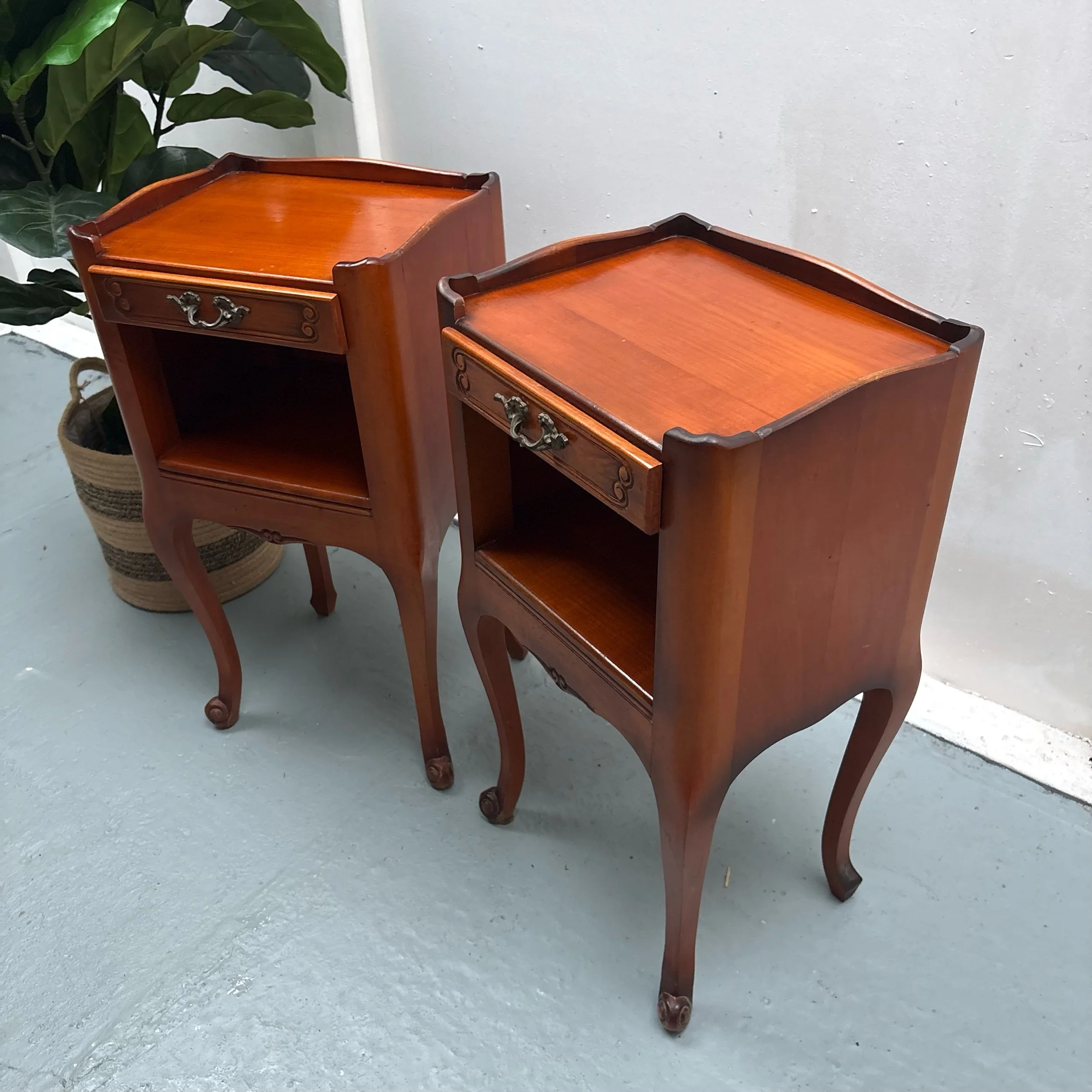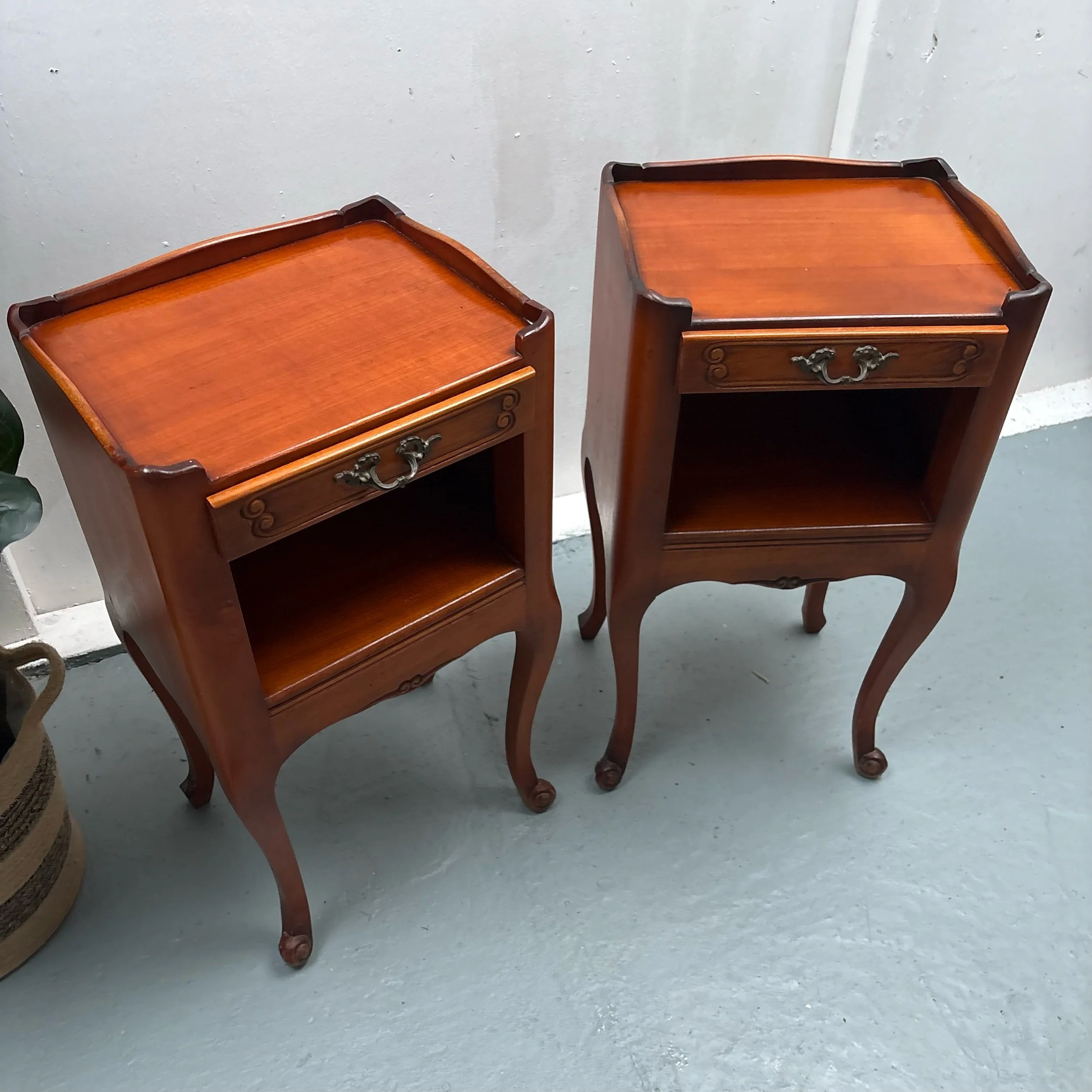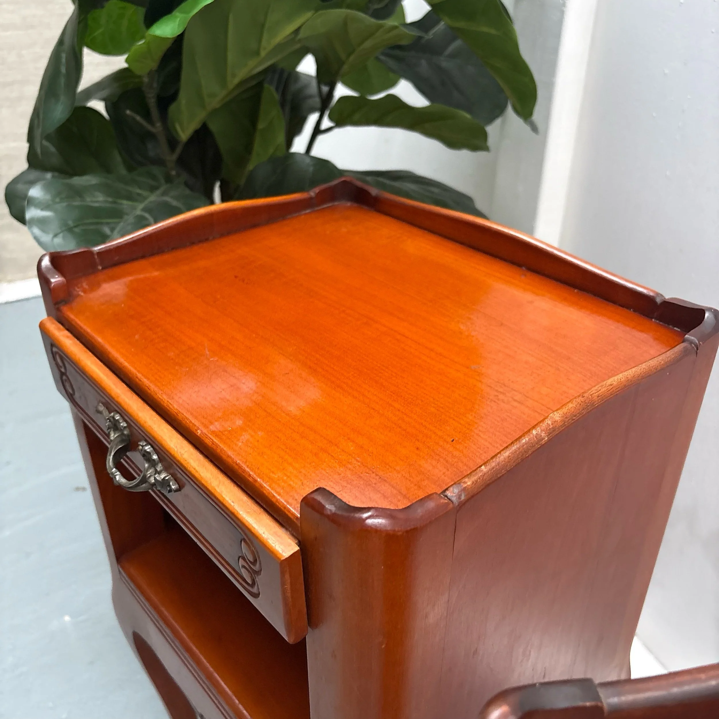 Vintage French Louis XV style Parquetry Top Cherry Wood Bedside Table “Chevet”