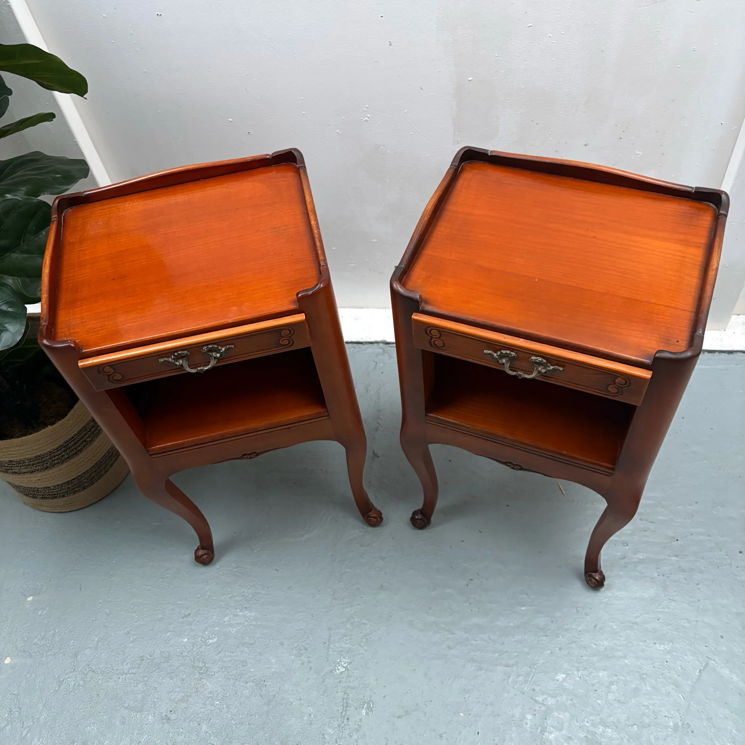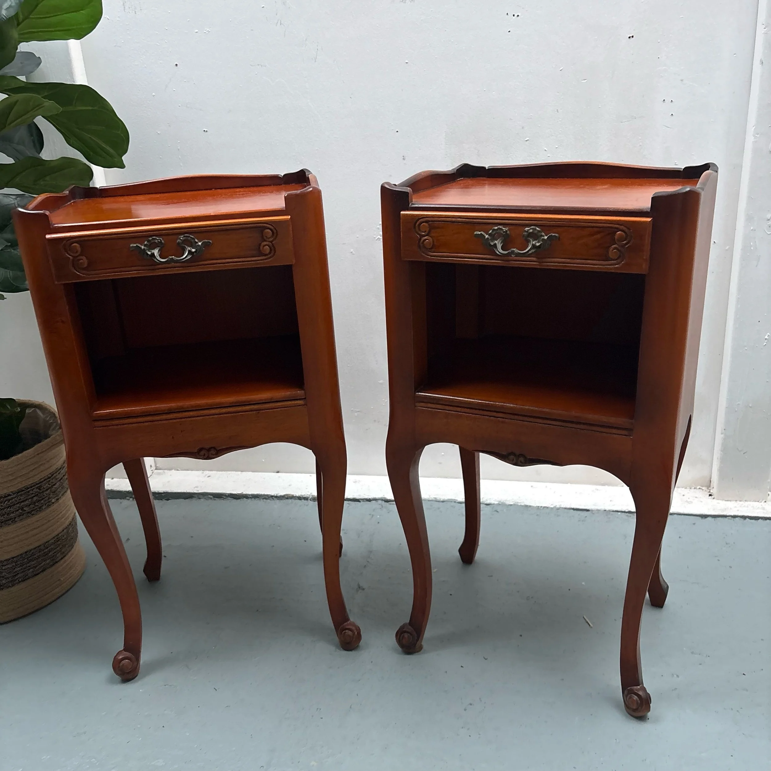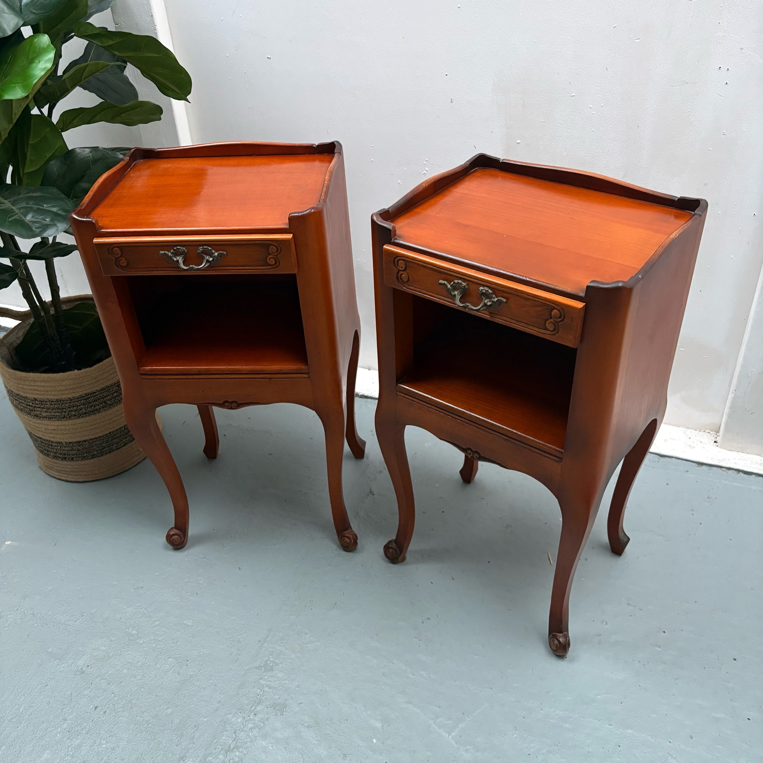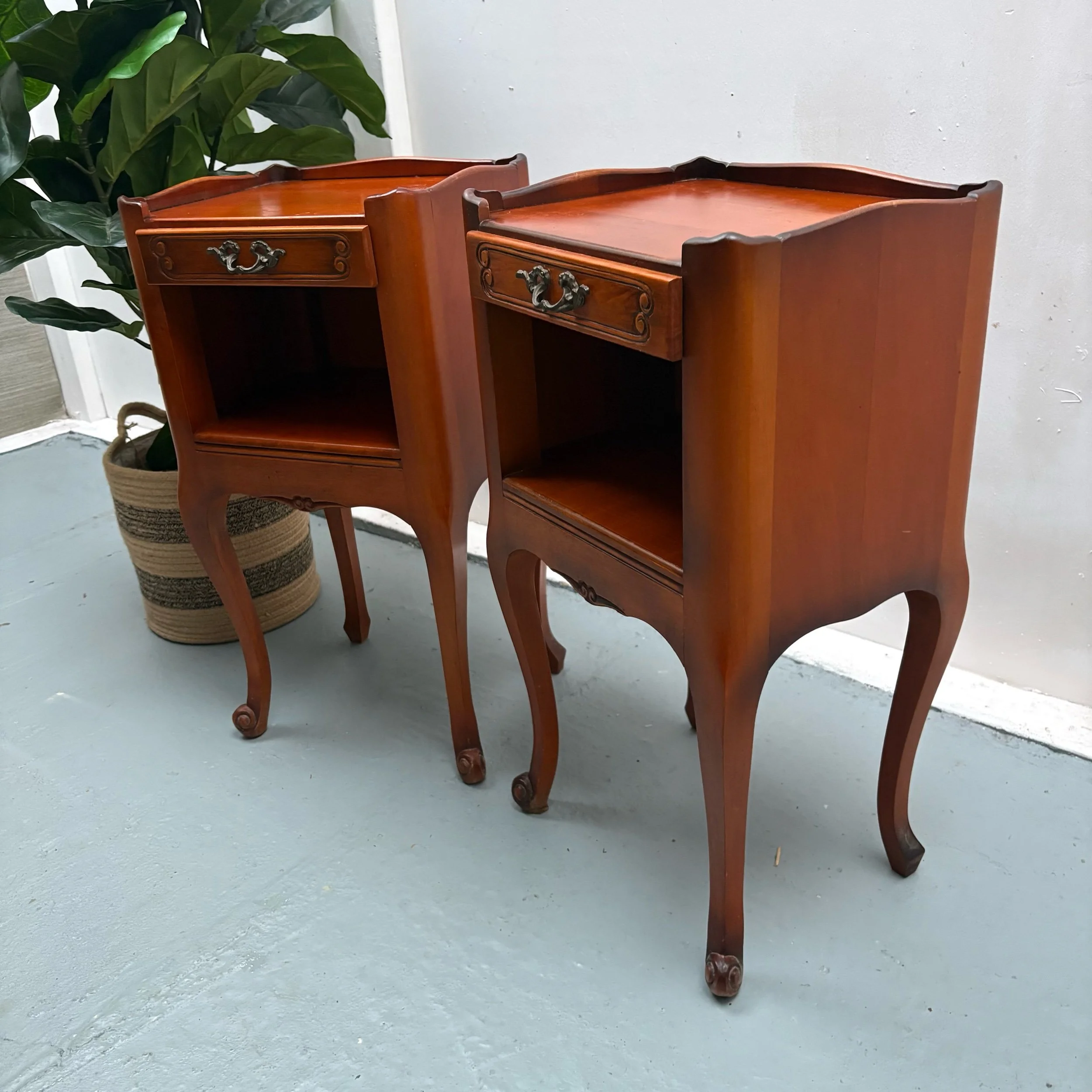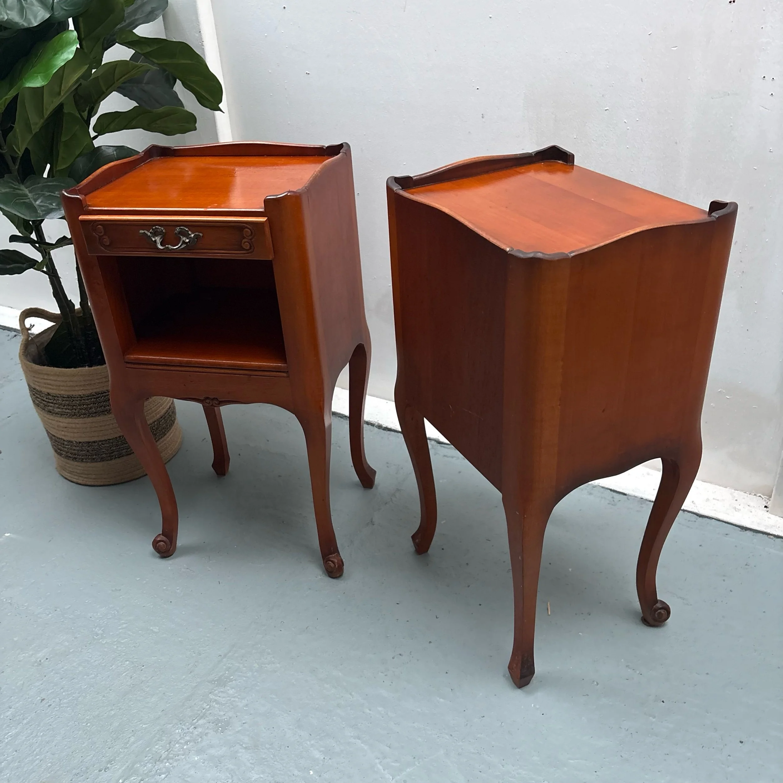 Vintage French Louis XV style Parquetry Top Cherry Wood Bedside Table “Chevet”