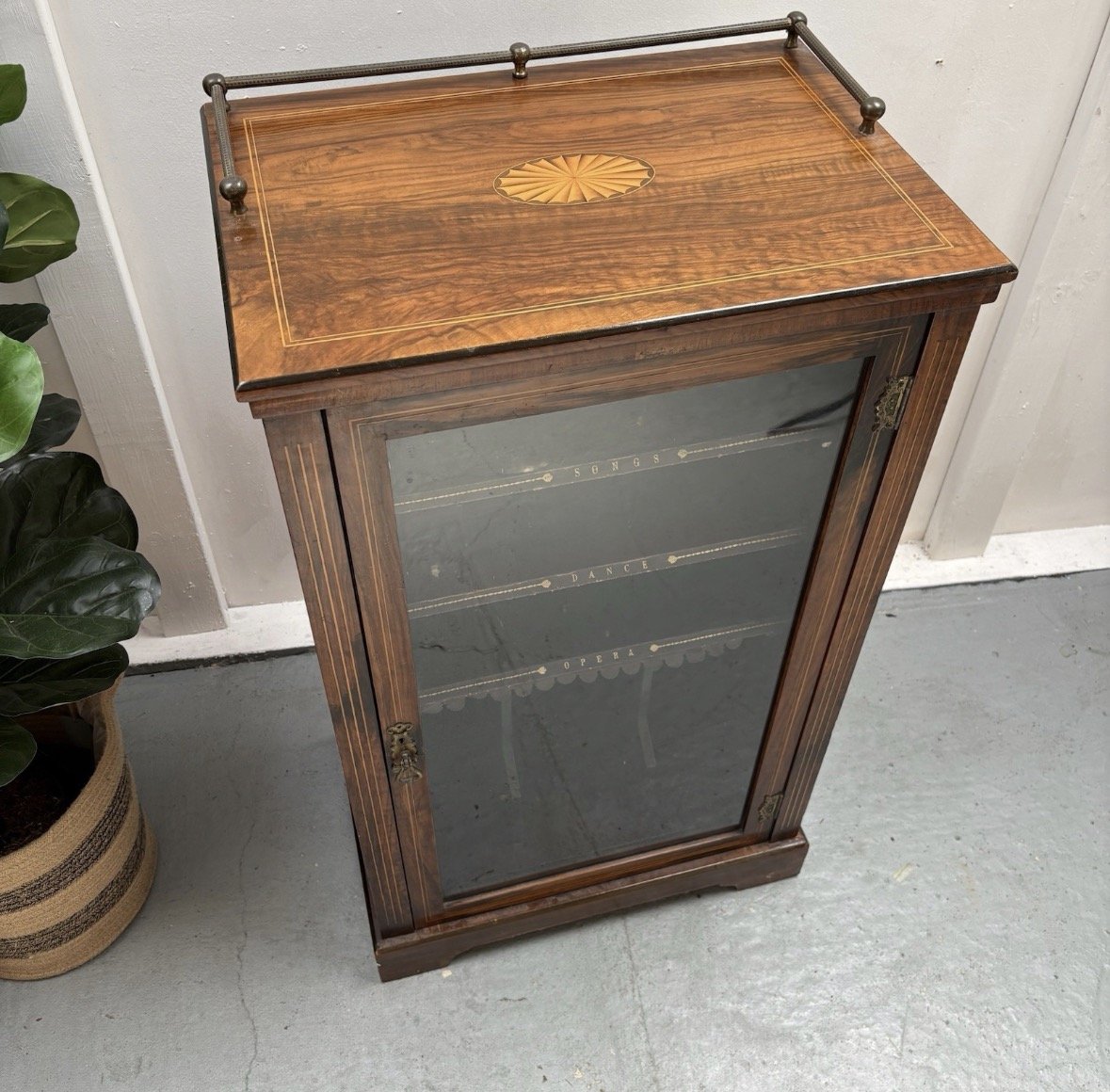 Antique Music Cabinet, English, Rosewood, Display Case, Victorian, Circa 1900